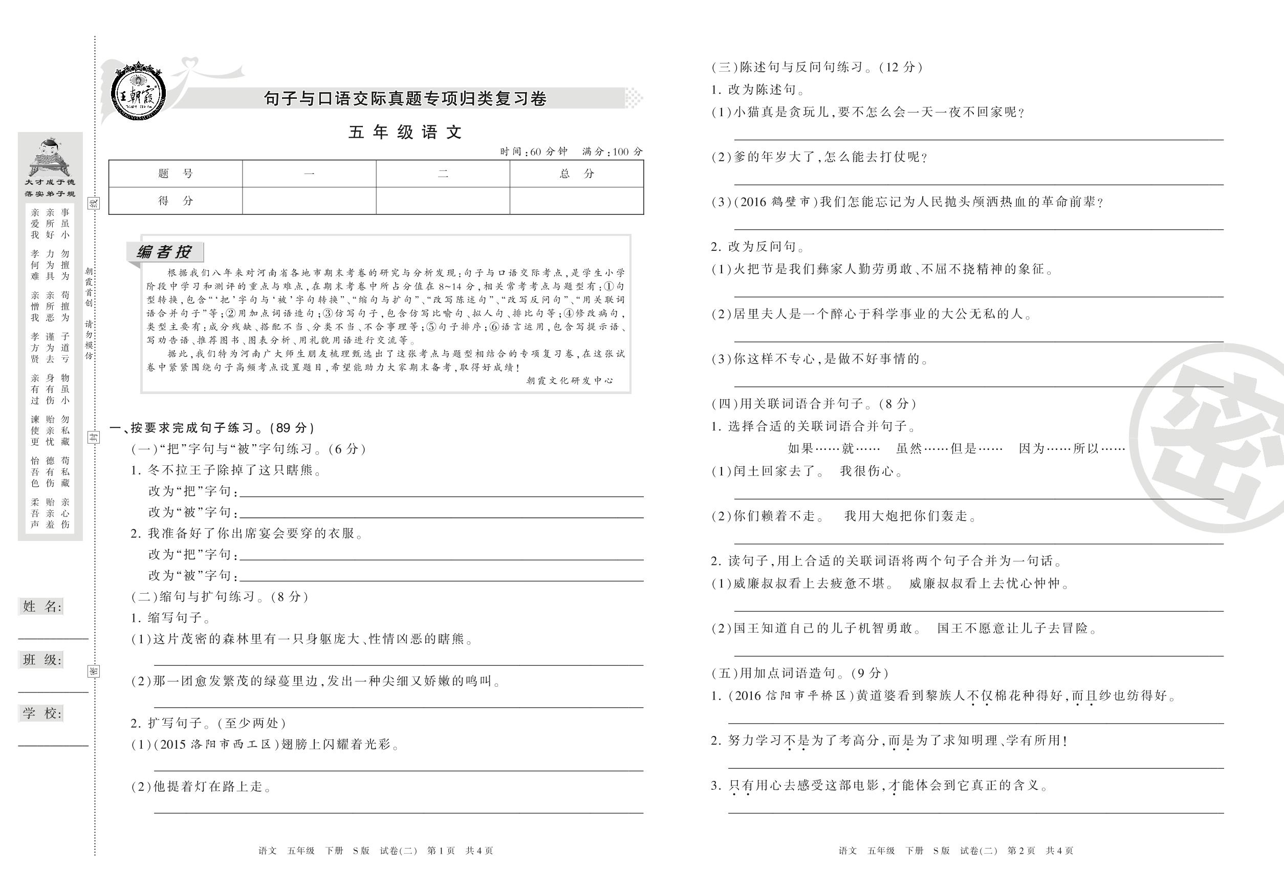 王朝霞期末专项卷五年级下册语文(S版)_R210801210228【2】