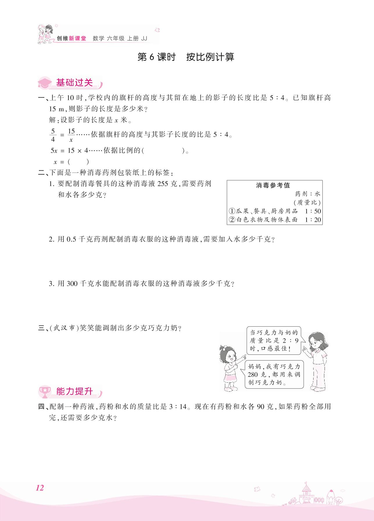2021上册六年级数学冀教版 二 比和比例——第6课时 按比例计算