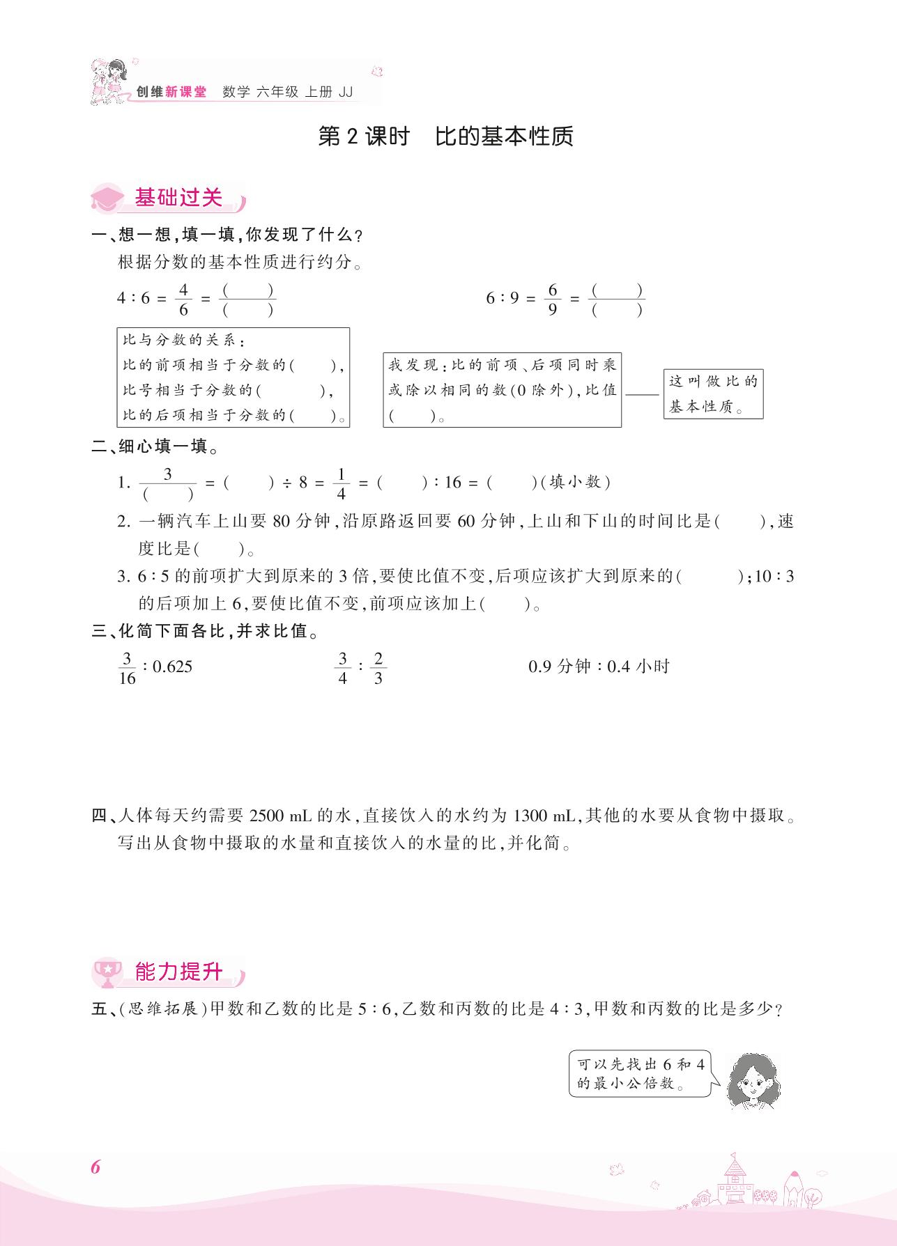 2021上册六年级数学冀教版 二 比和比例——第2课时 比的基本性质