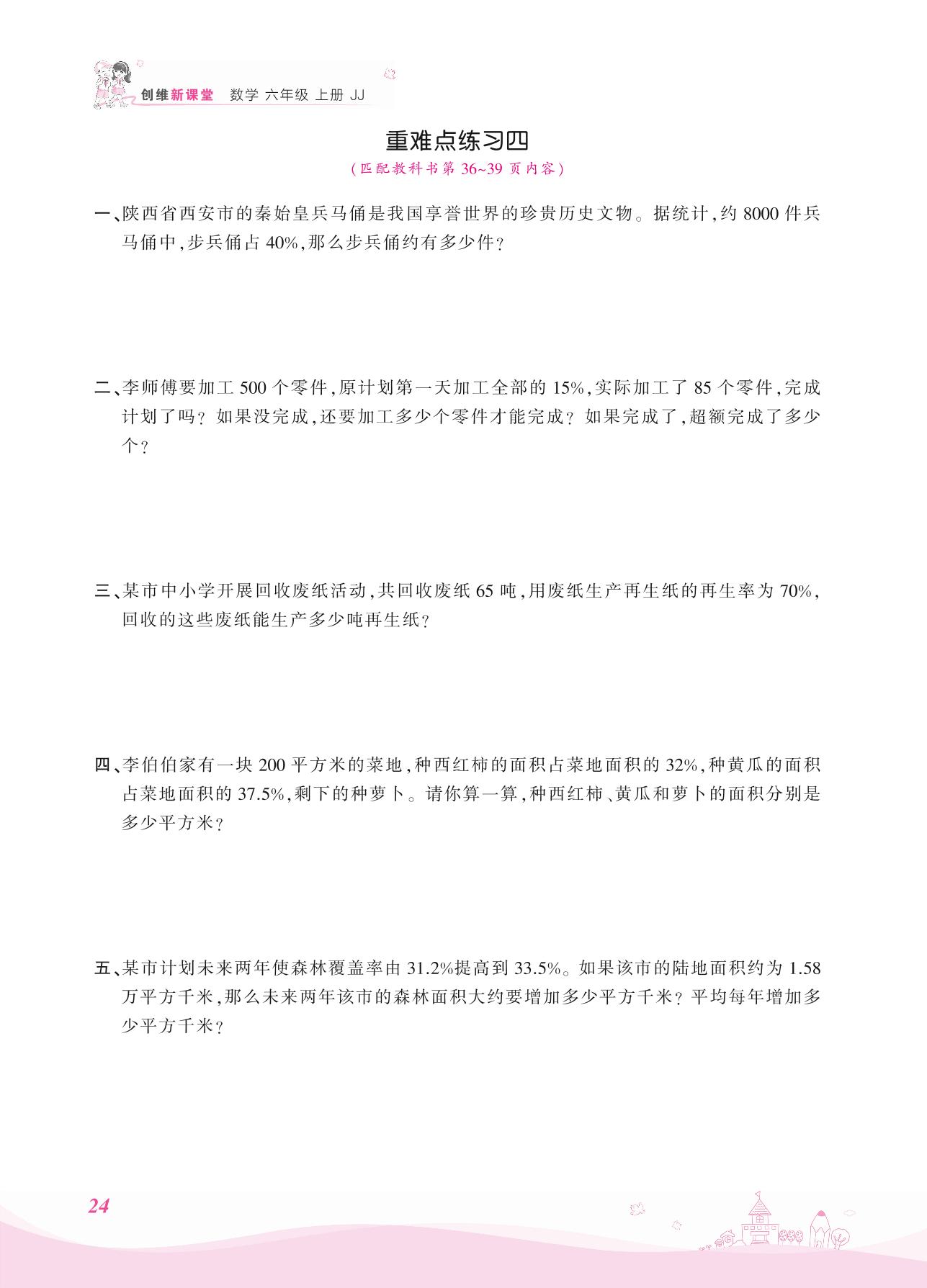 2021上册六年级数学冀教版 三 百分数——重难点练习四