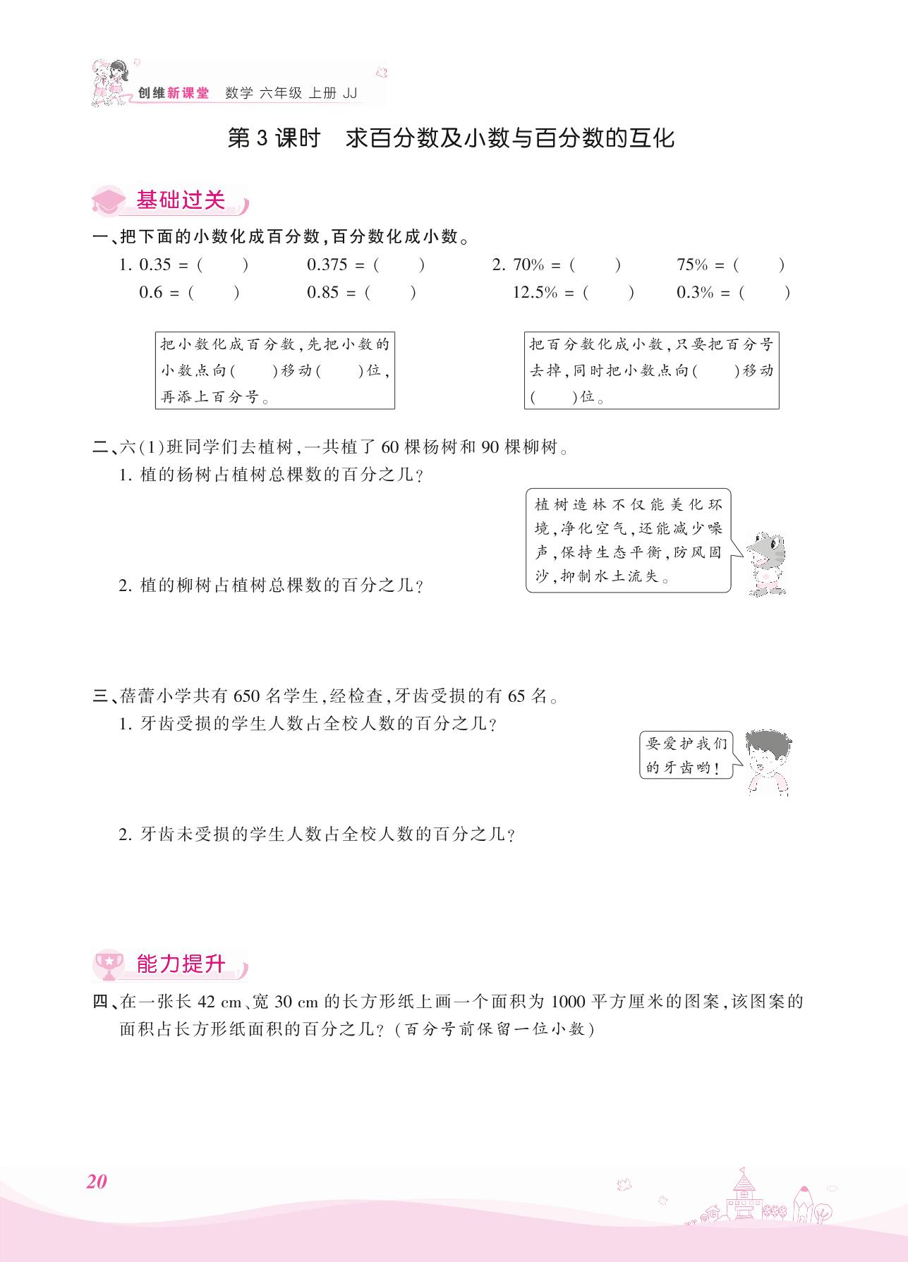 2021上册六年级数学冀教版 三 百分数——第3课时 求百分数及小数与百分数的互化