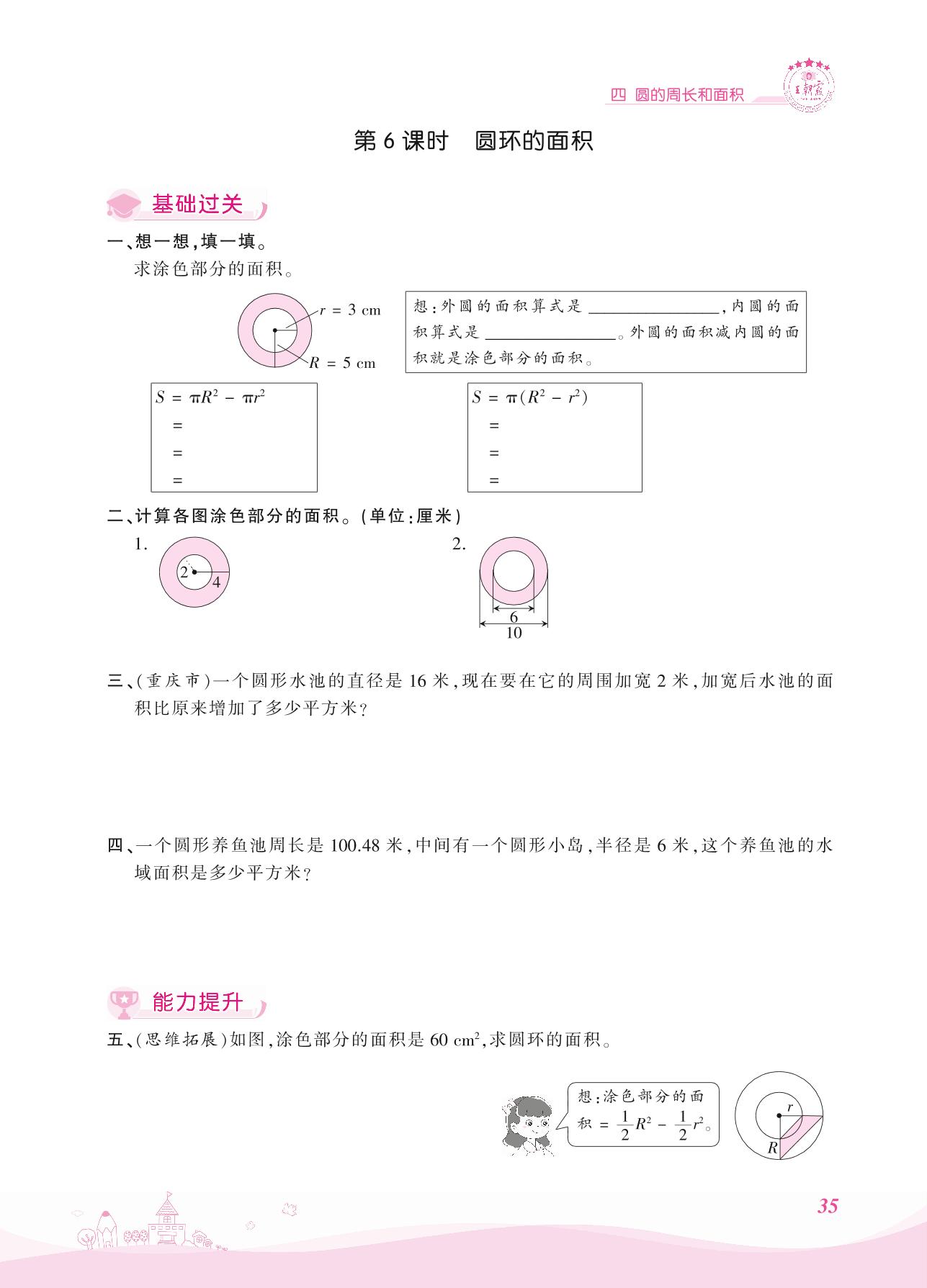 2021上册六年级数学冀教版 四 圆的周长和面积——第6课时 圆环的面积