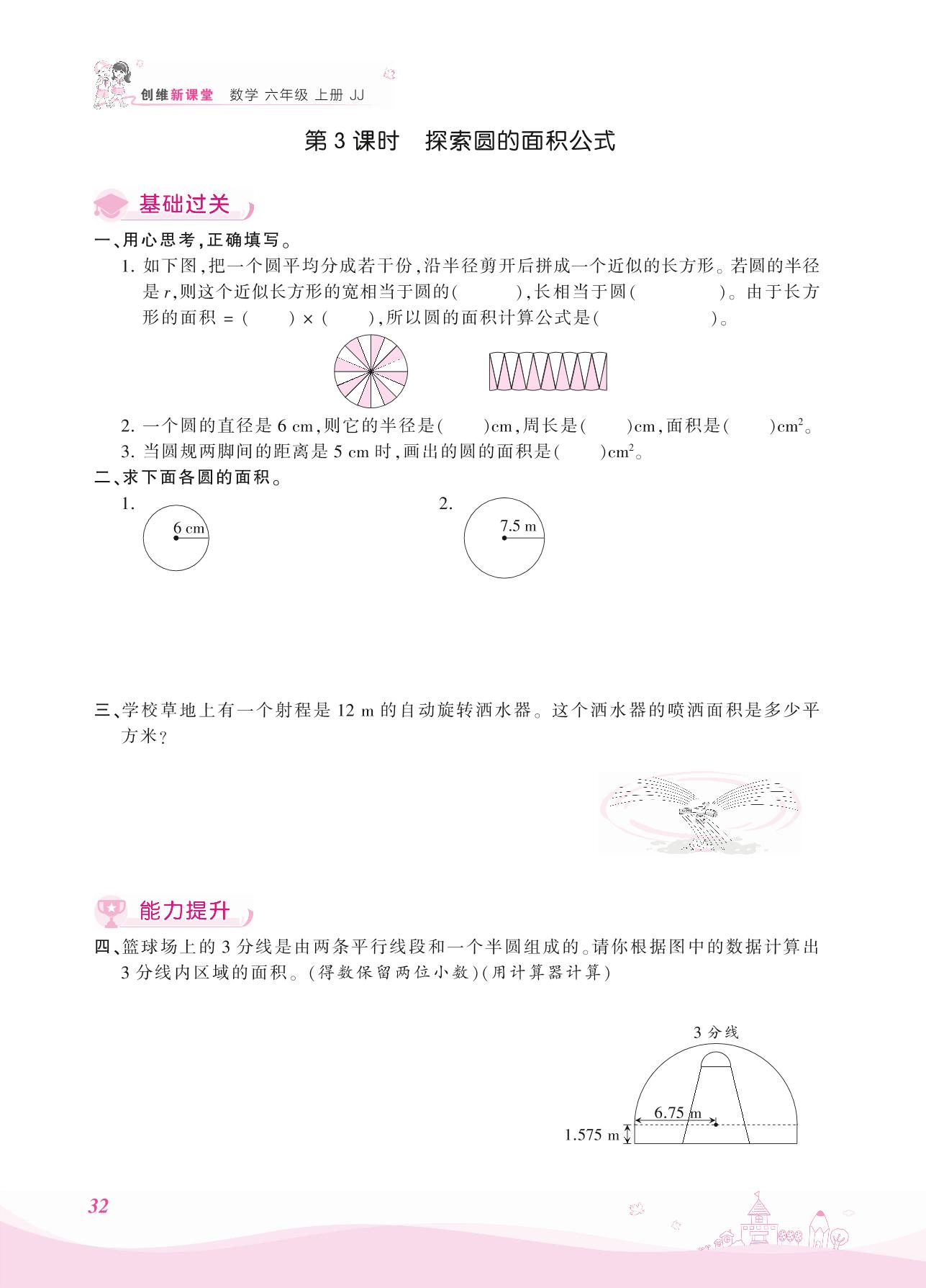 2021上册六年级数学冀教版 四 圆的周长和面积——第3课时 探索圆的面积公式