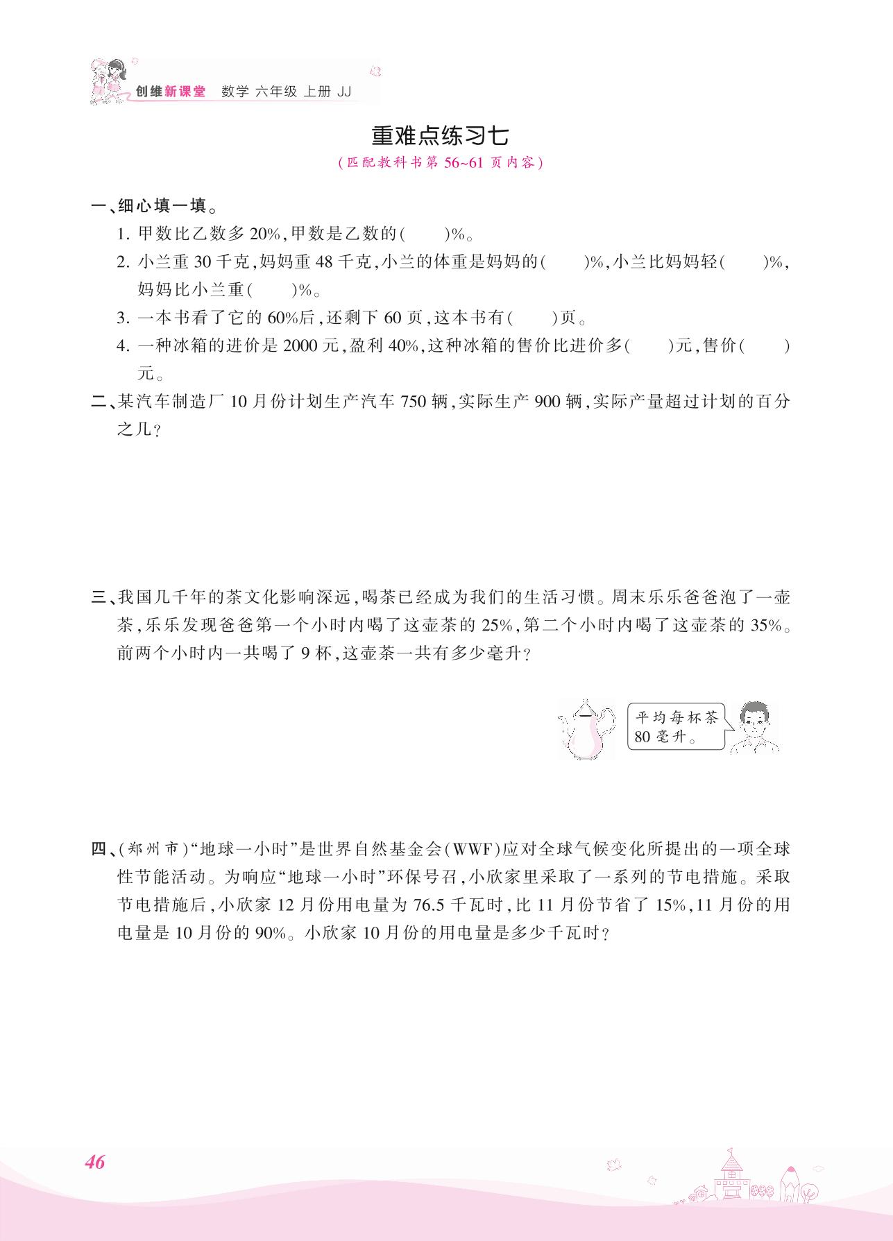 2021上册六年级数学冀教版 五 百分数的应用——重难点练习七
