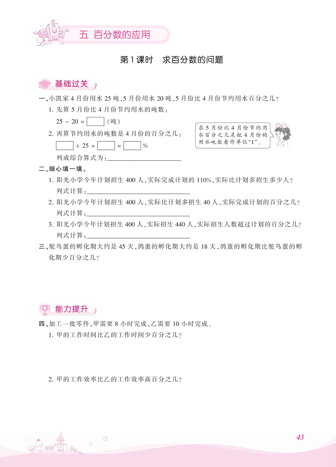 2021上册六年级数学冀教版 五 百分数的应用——第1课时 求百分数的问题