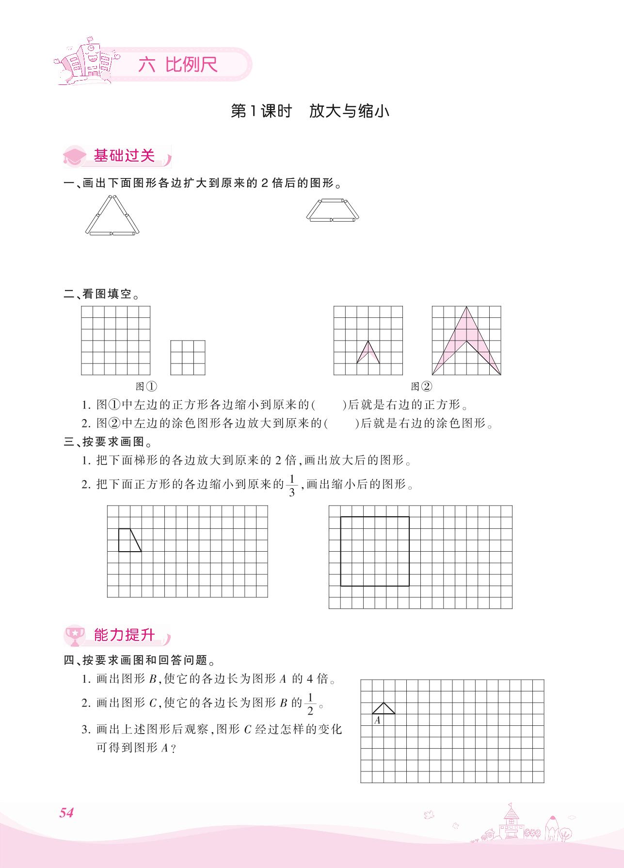 2021上册六年级数学冀教版 六 比例尺——第1课时 放大与缩小