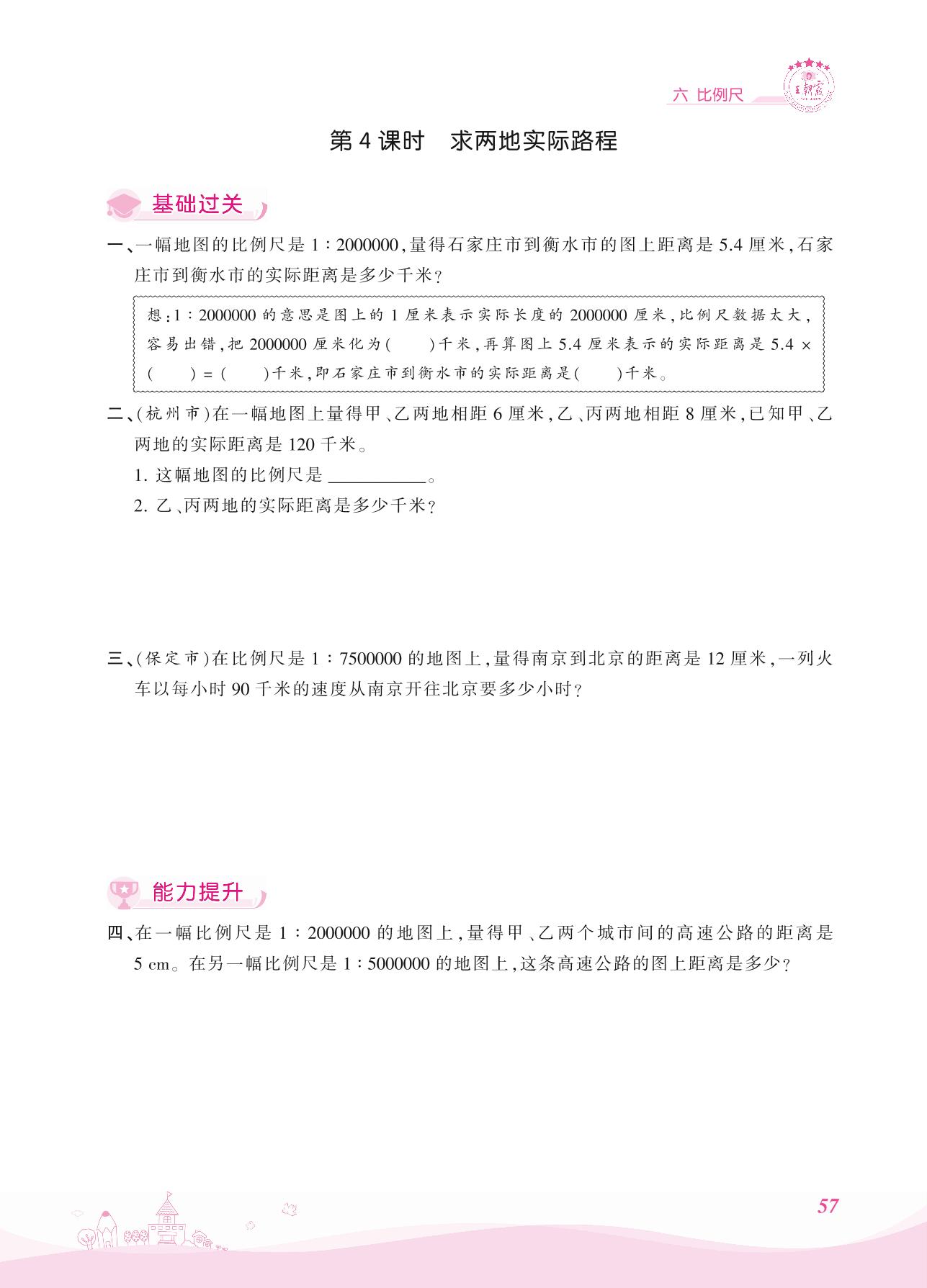 2021上册六年级数学冀教版 六 比例尺——第4课时 求两地实际路程
