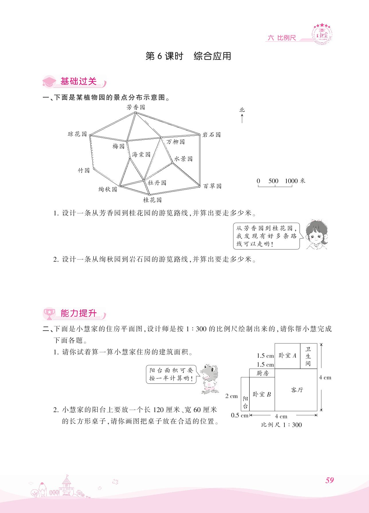 2021上册六年级数学冀教版 六 比例尺——第6课时 综合应用