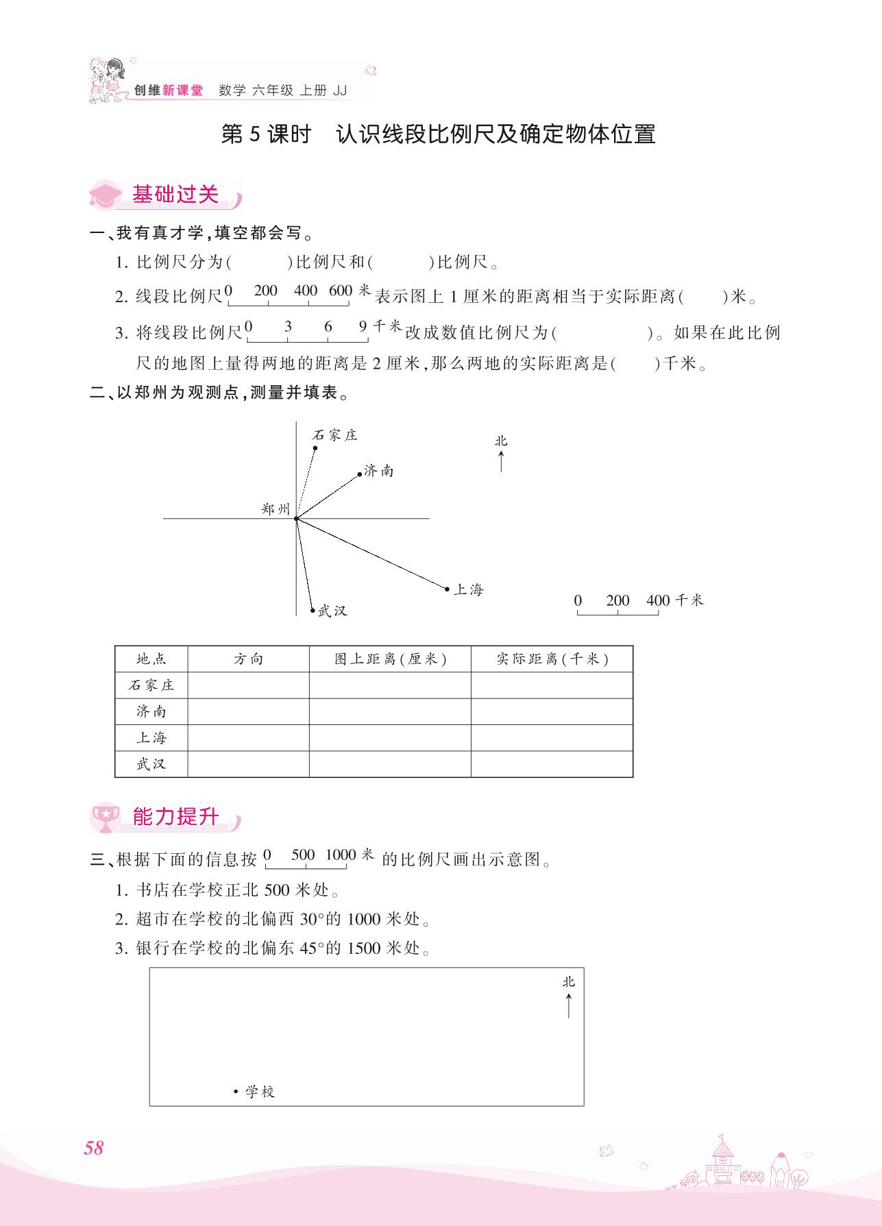 2021上册六年级数学冀教版 六 比例尺——第5课时 认识线段比例尺及确定物体位置
