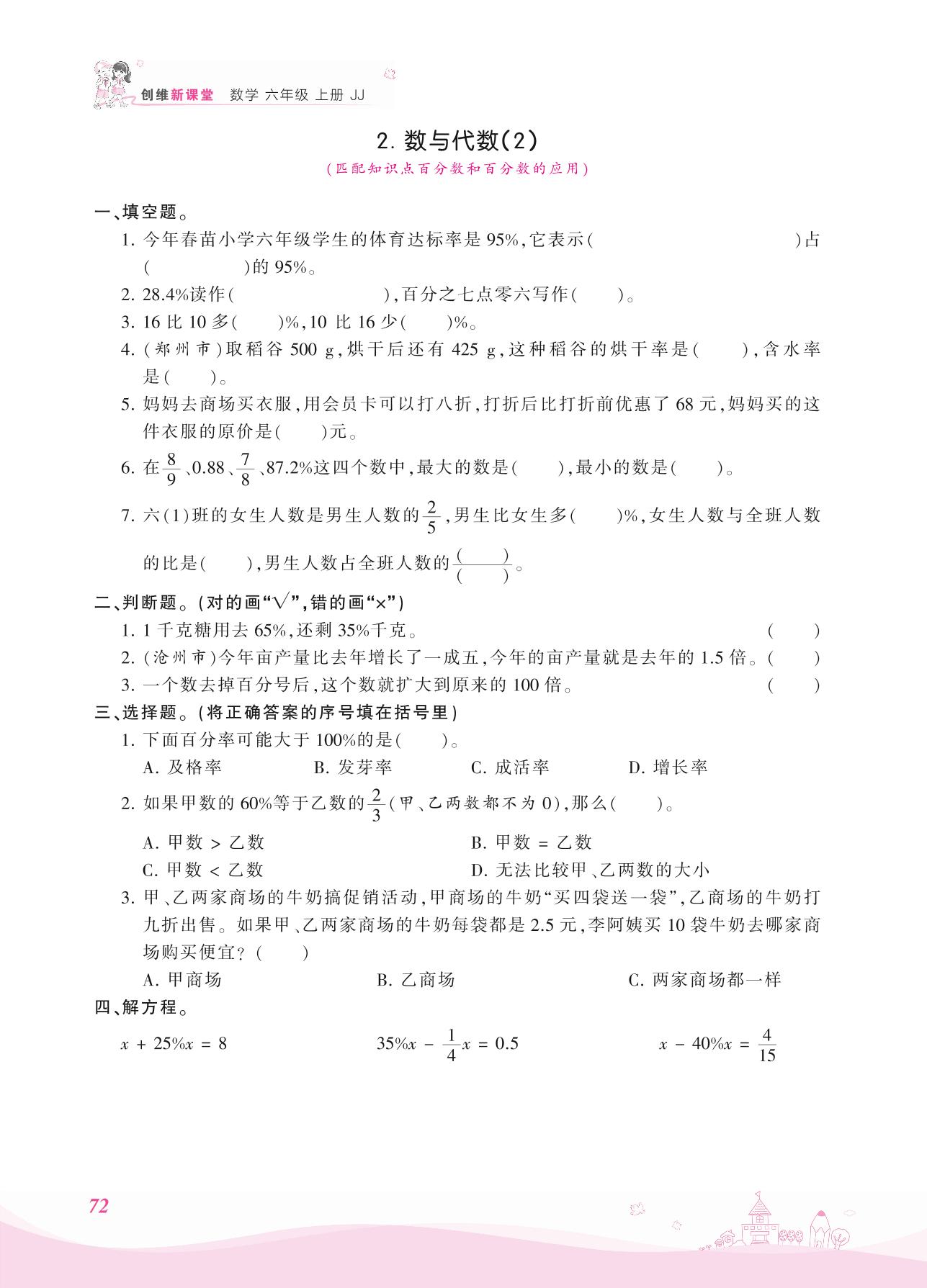 六年级数学冀教版上册课时作业