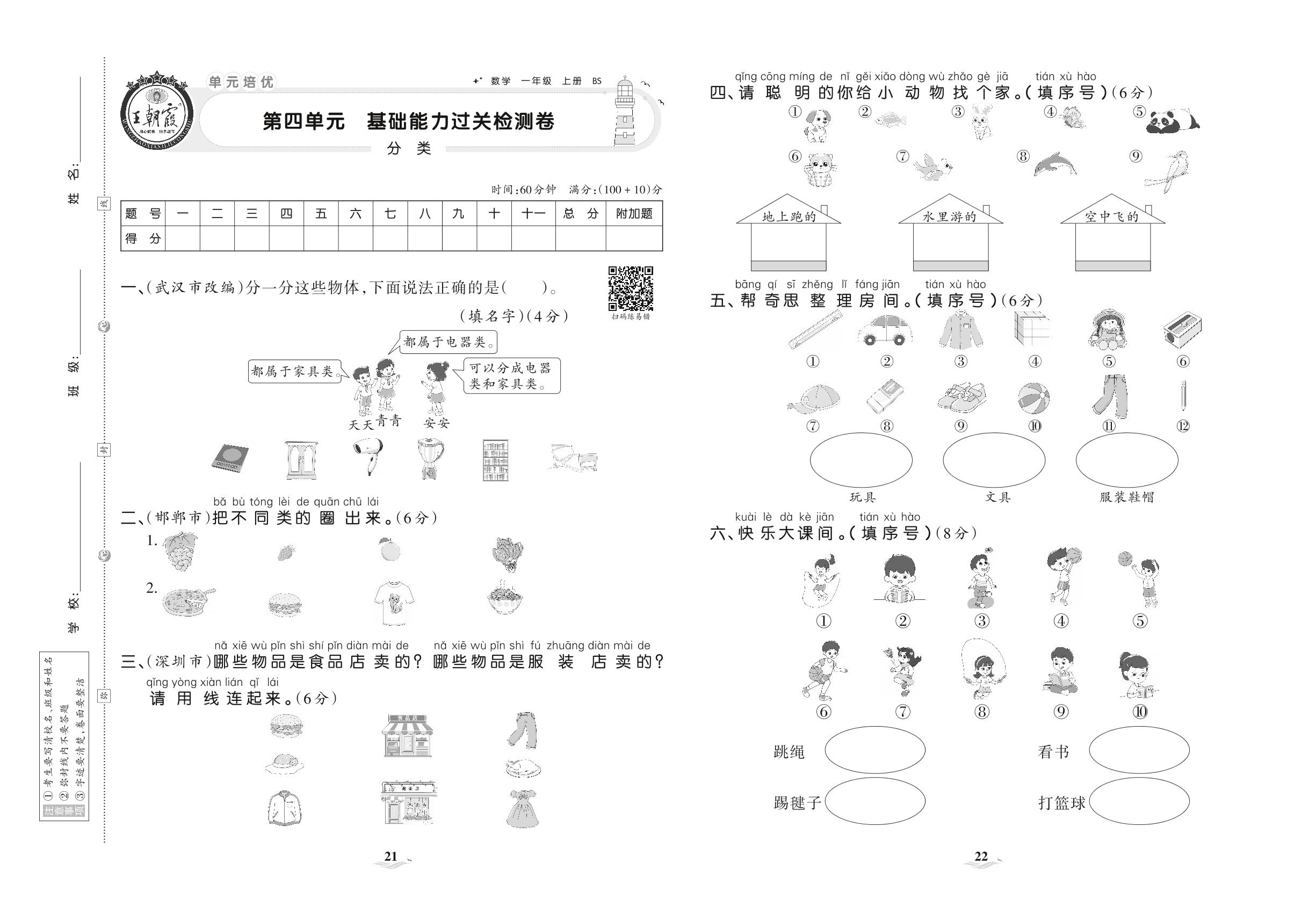 2021上册一年级数学北师版 第四单元 基础能力过关检测卷