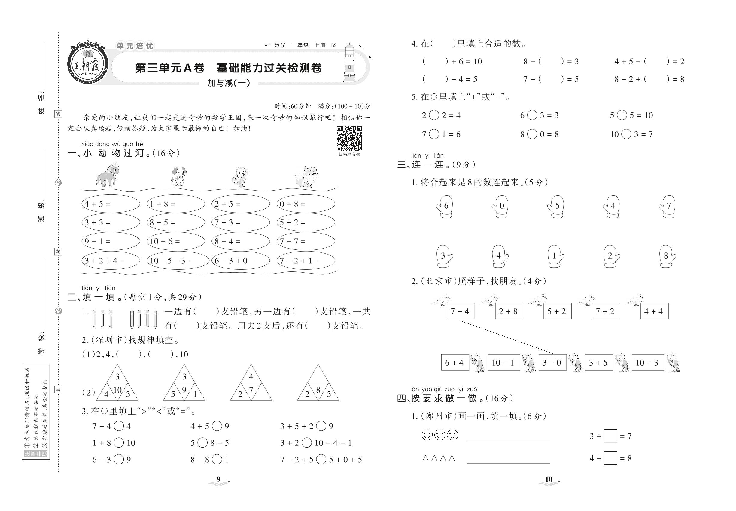 一年级数学北师版上册单元卷