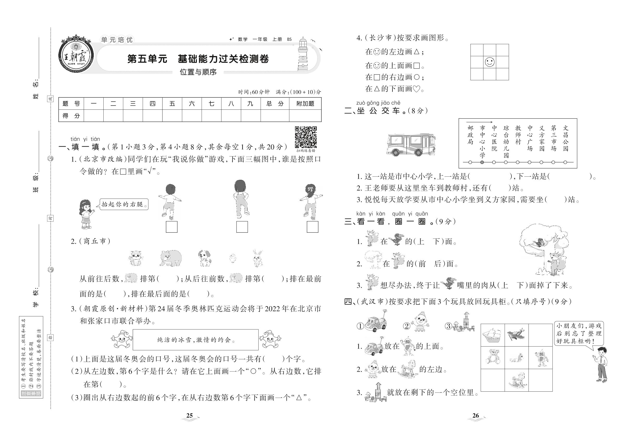 2021上册一年级数学北师版 第五单元 基础能力过关检测卷