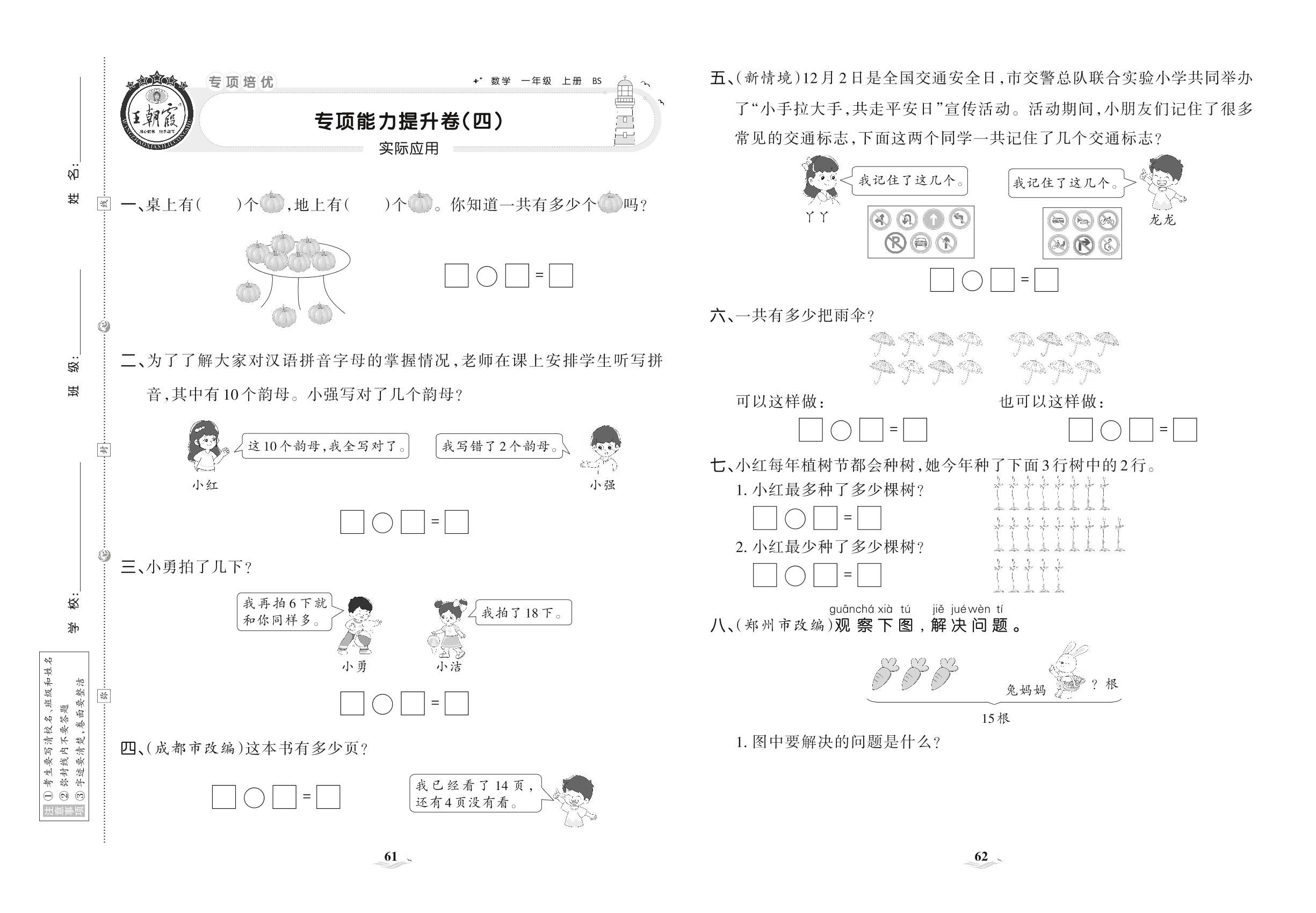 2021上册一年级数学北师版 专项能力提升卷(四) 实际应用
