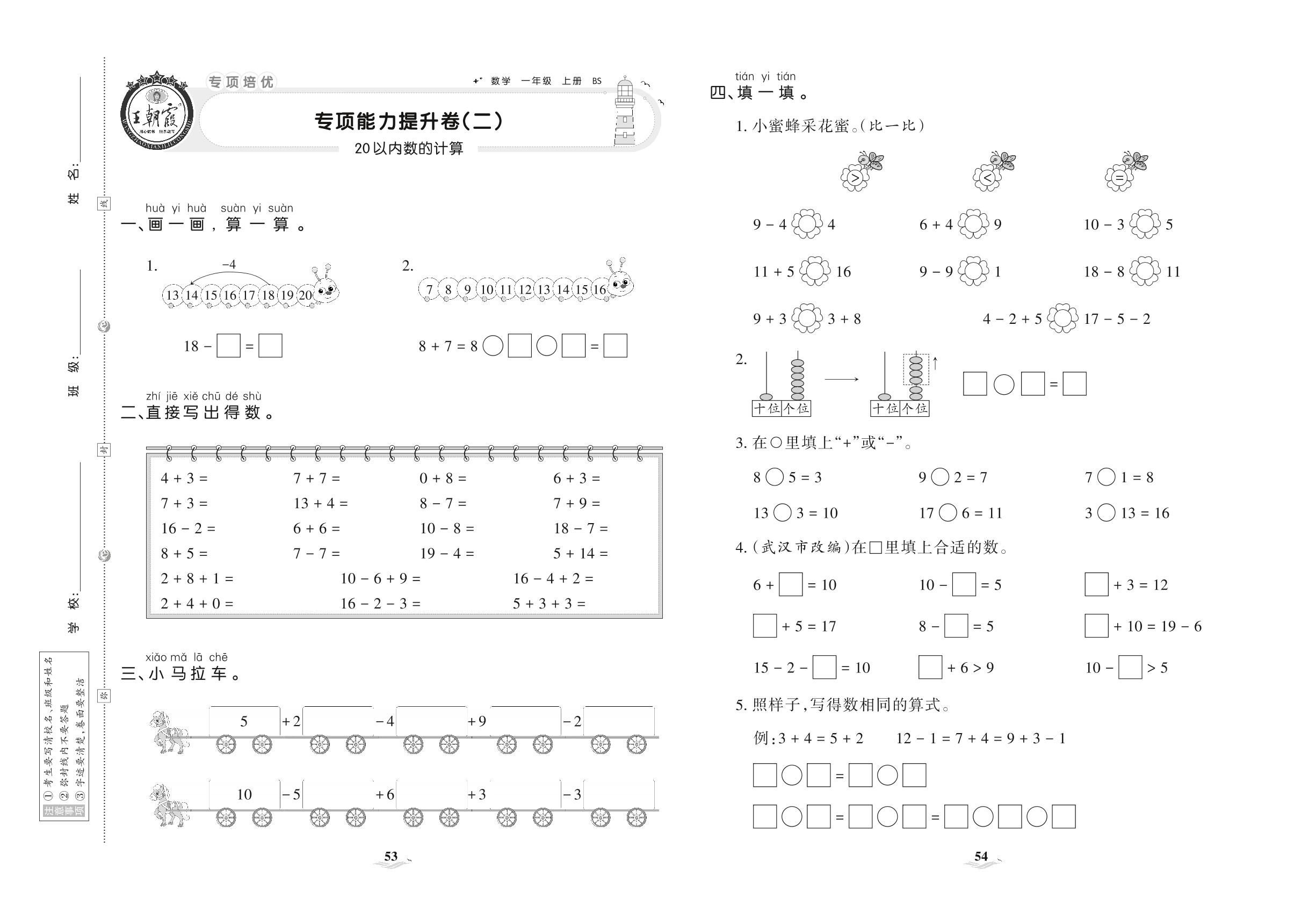 2021上册一年级数学北师版 专项能力提升卷(二) 20以内数的计算