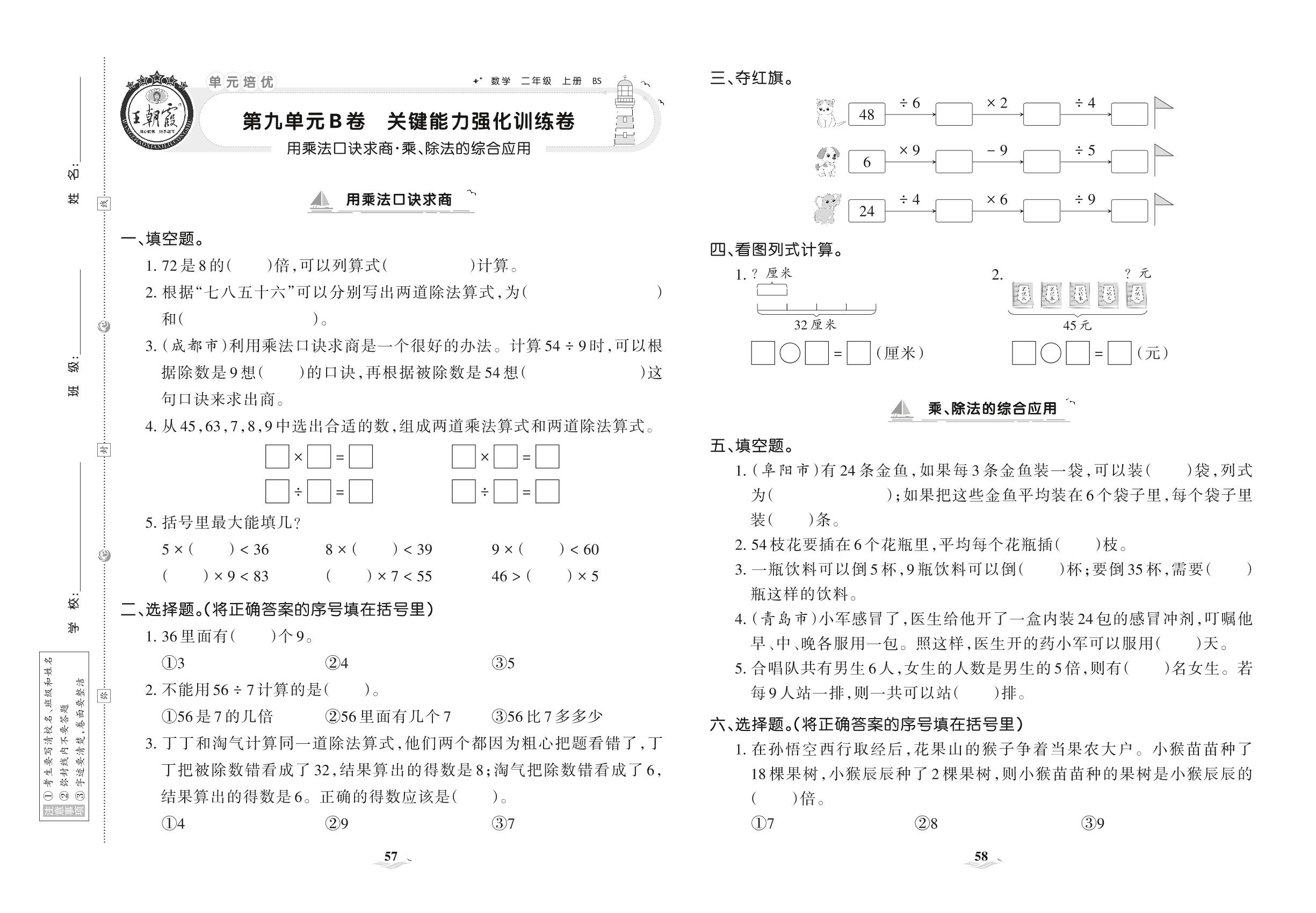 2021上册二年级数学北师版 第九单元B卷 关键能力强化训练卷