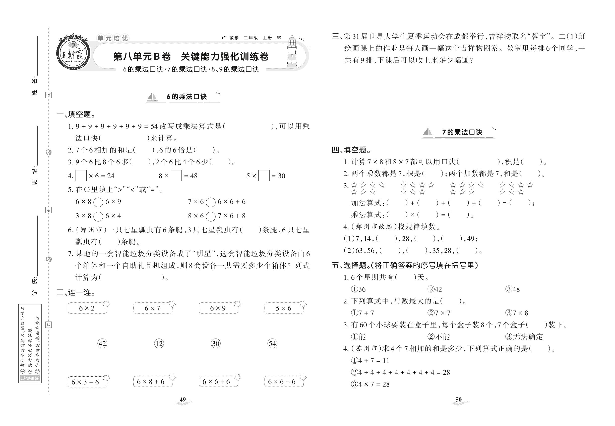 2021上册二年级数学北师版 第八单元B卷 关键能力强化训练卷
