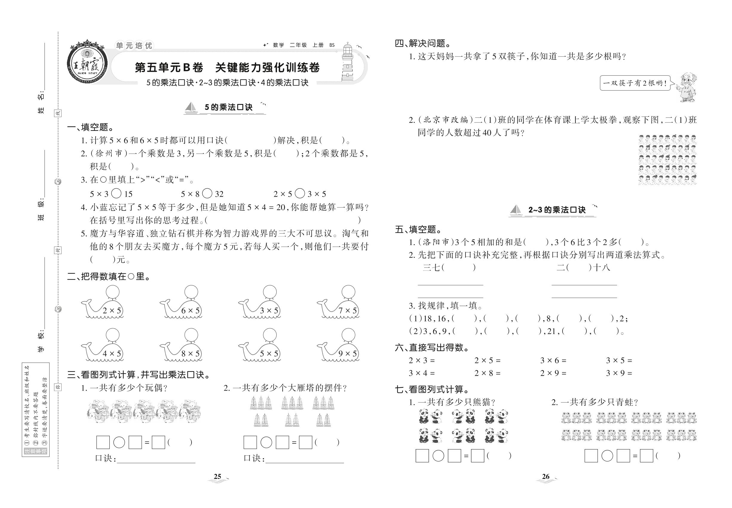 2021上册二年级数学北师版 第五单元B卷 关键能力强化训练卷