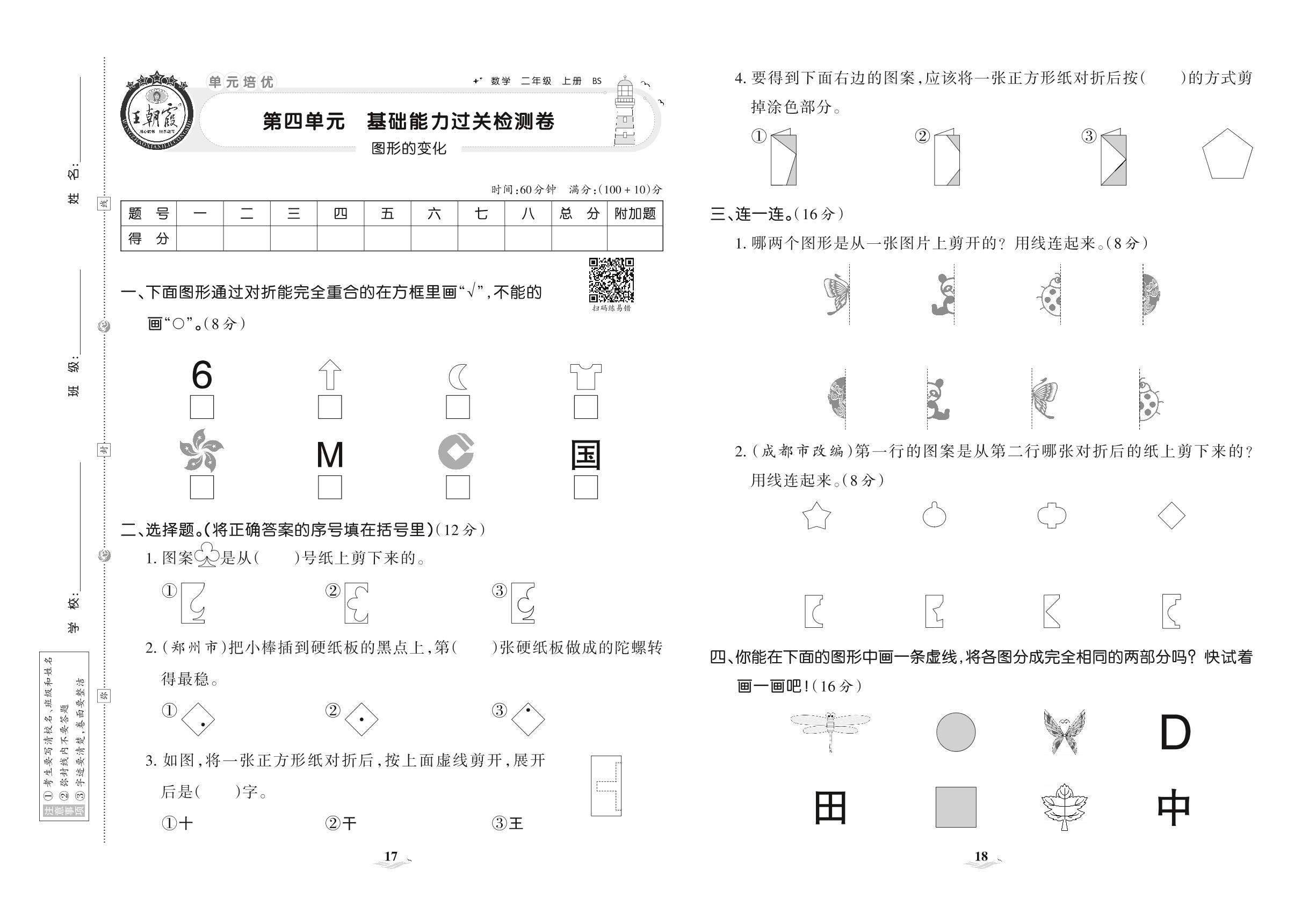2021上册二年级数学北师版 第四单元 基础能力过关检测卷