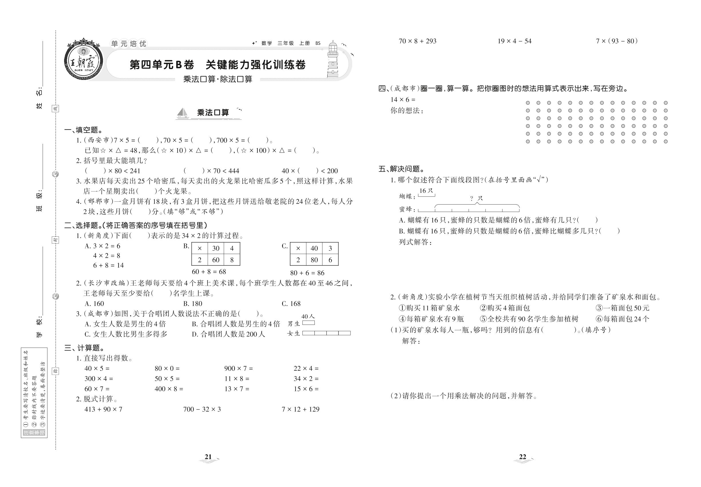 2021上册三年级数学北师版 第四单元B卷 关键能力强化训练卷