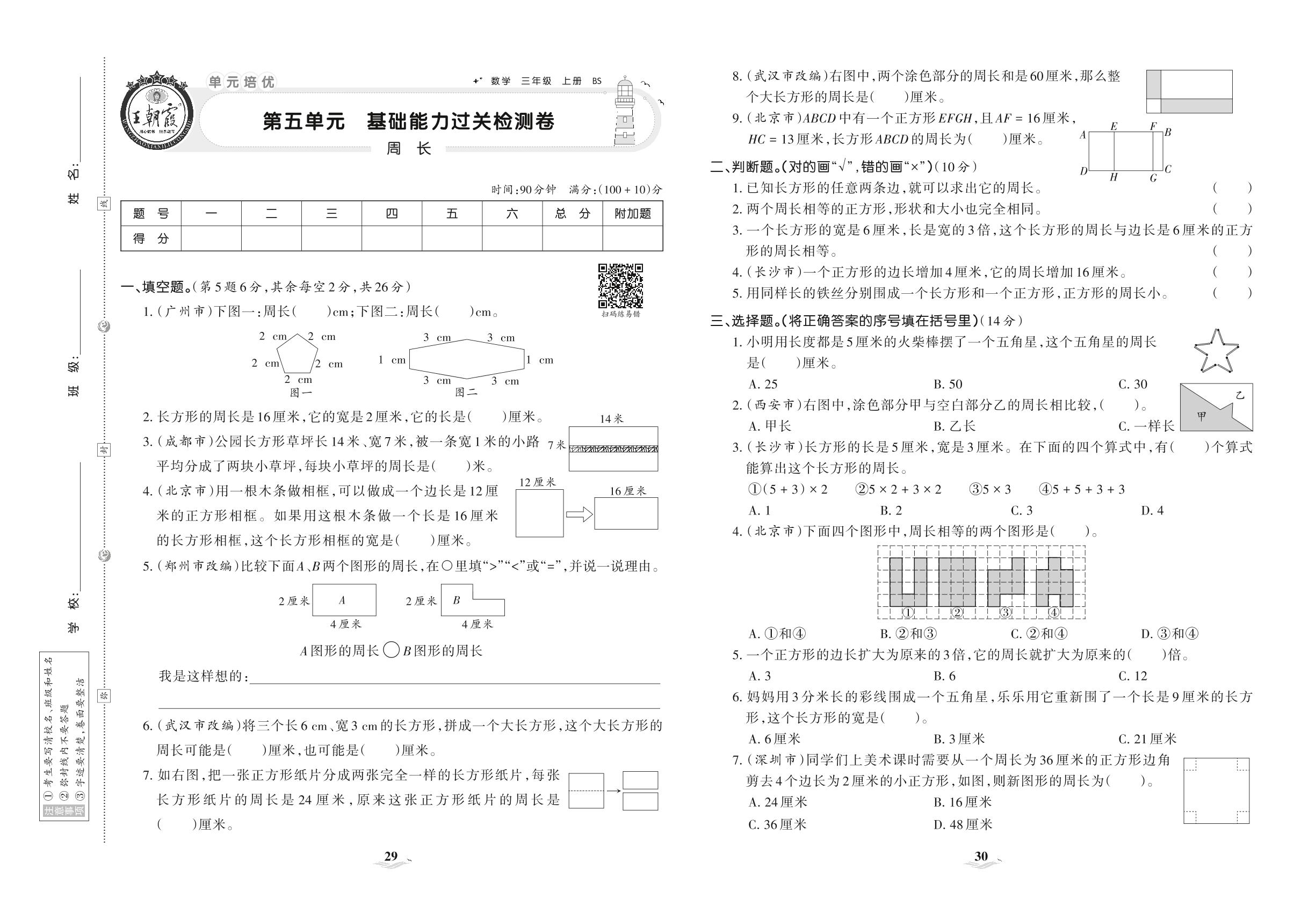 2021上册三年级数学北师版 第五单元 基础能力过关检测卷