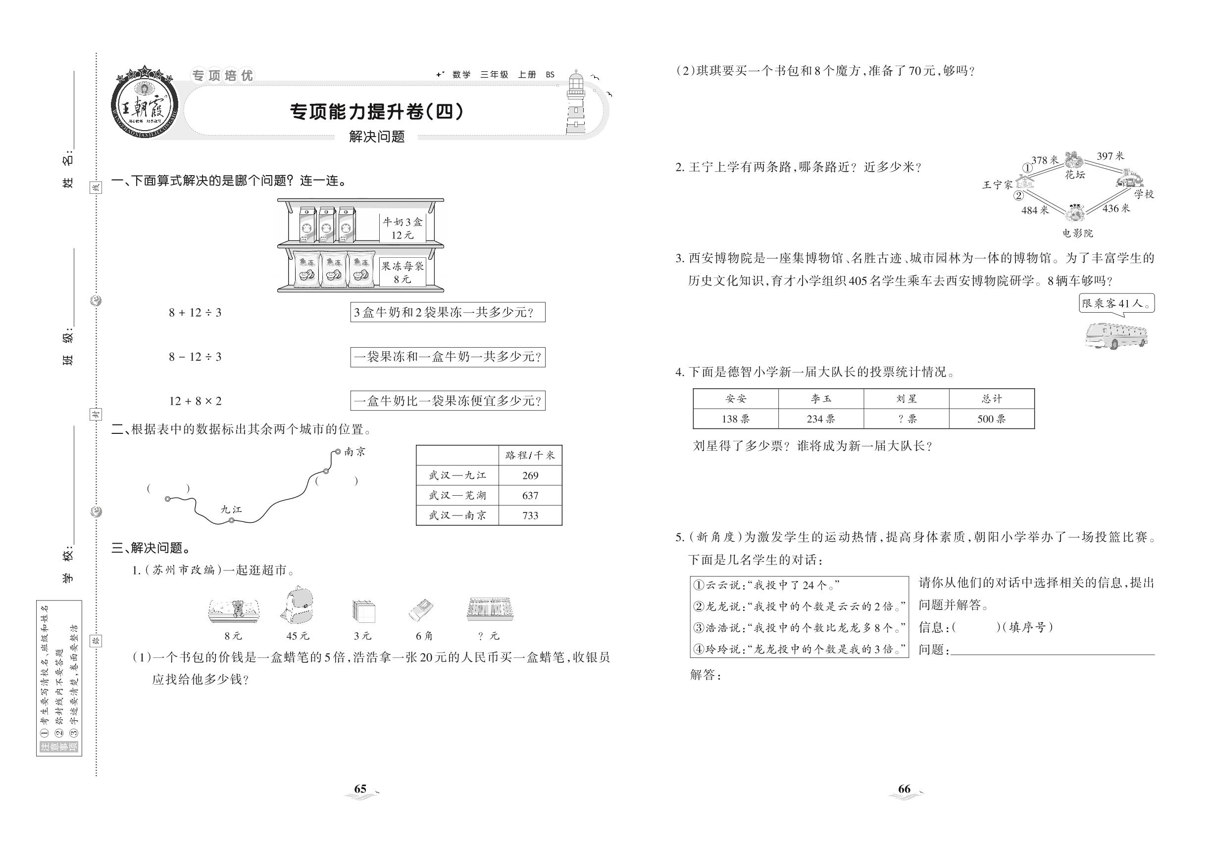 2021上册三年级数学北师版 专项能力提升卷(四) 解决问题