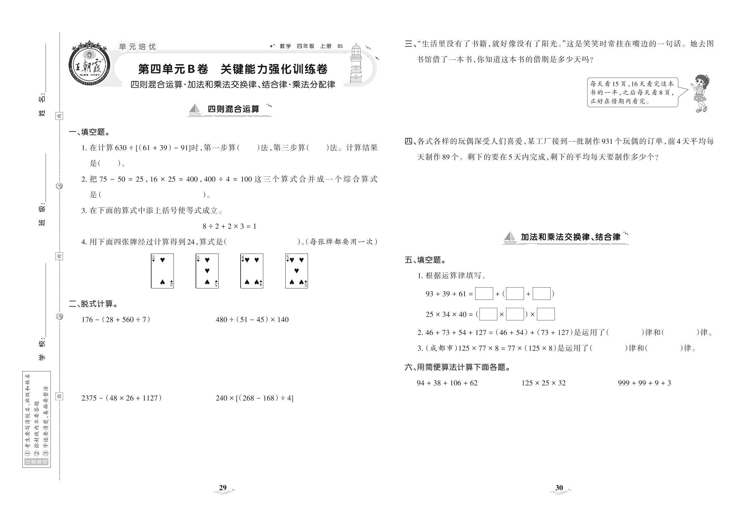 2021上册四年级数学北师版 第四单元B卷 关键能力强化训练卷