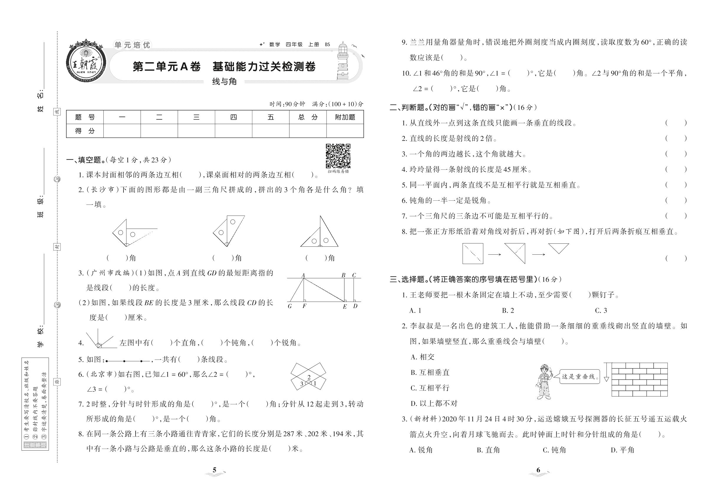 2021上册四年级数学北师版 第二单元A卷 基础能力过关检测卷