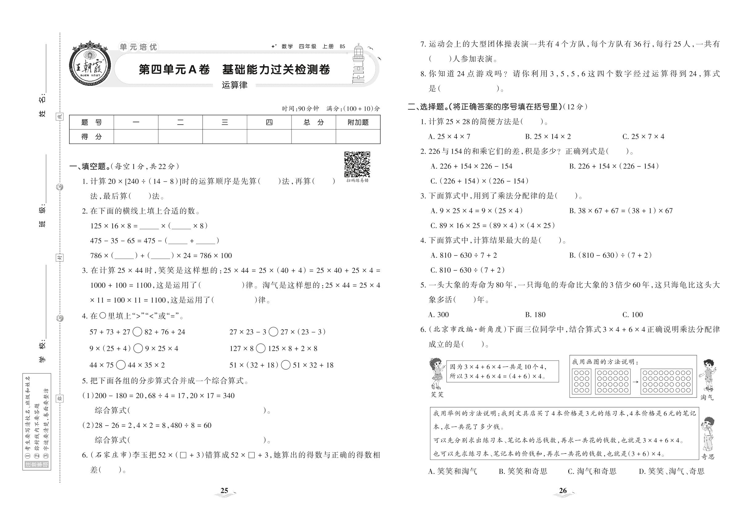 四年级数学北师版上册单元卷