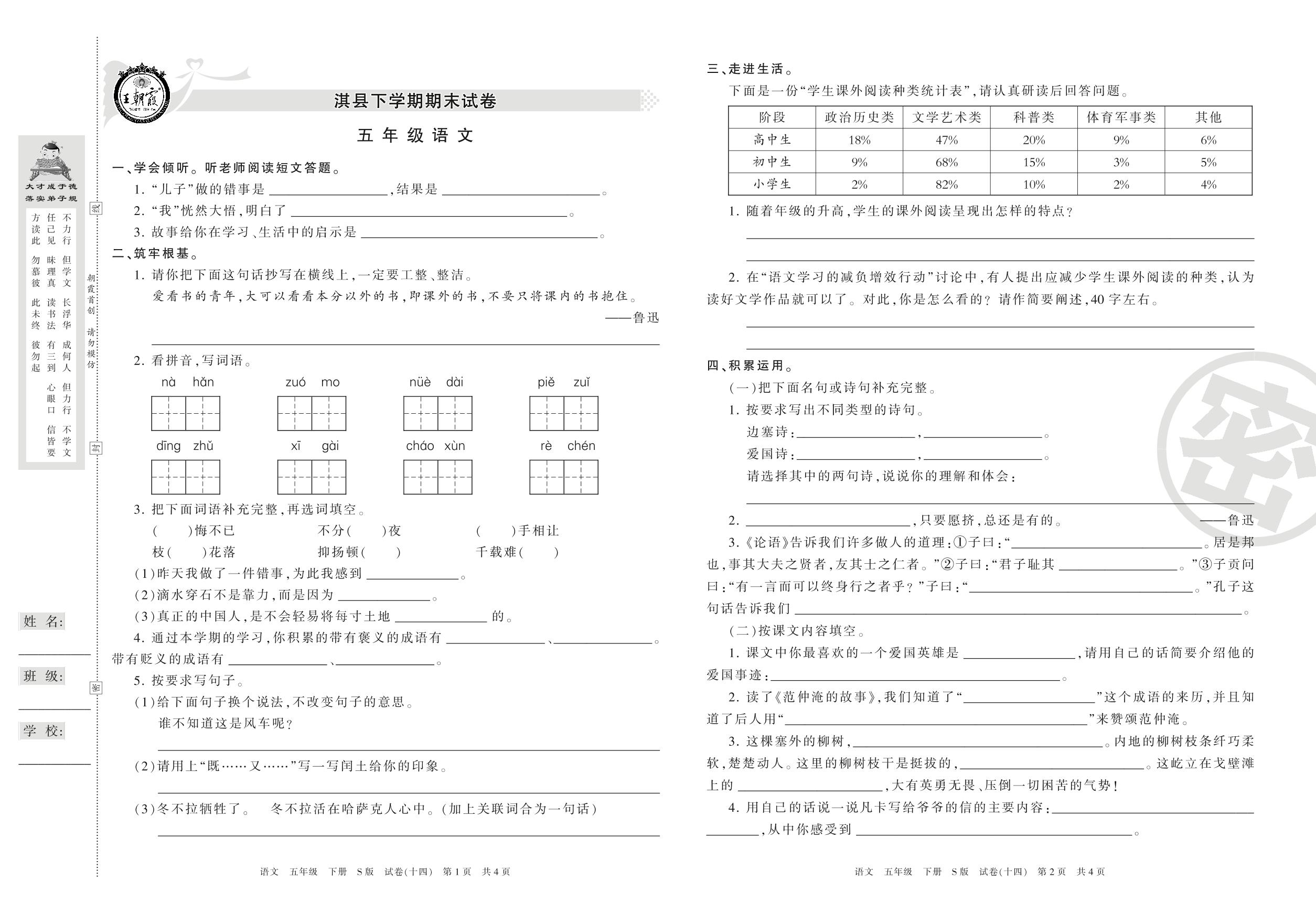 2015-2016学年第二学期鹤壁市淇县五年级语文试卷(S版)【14】