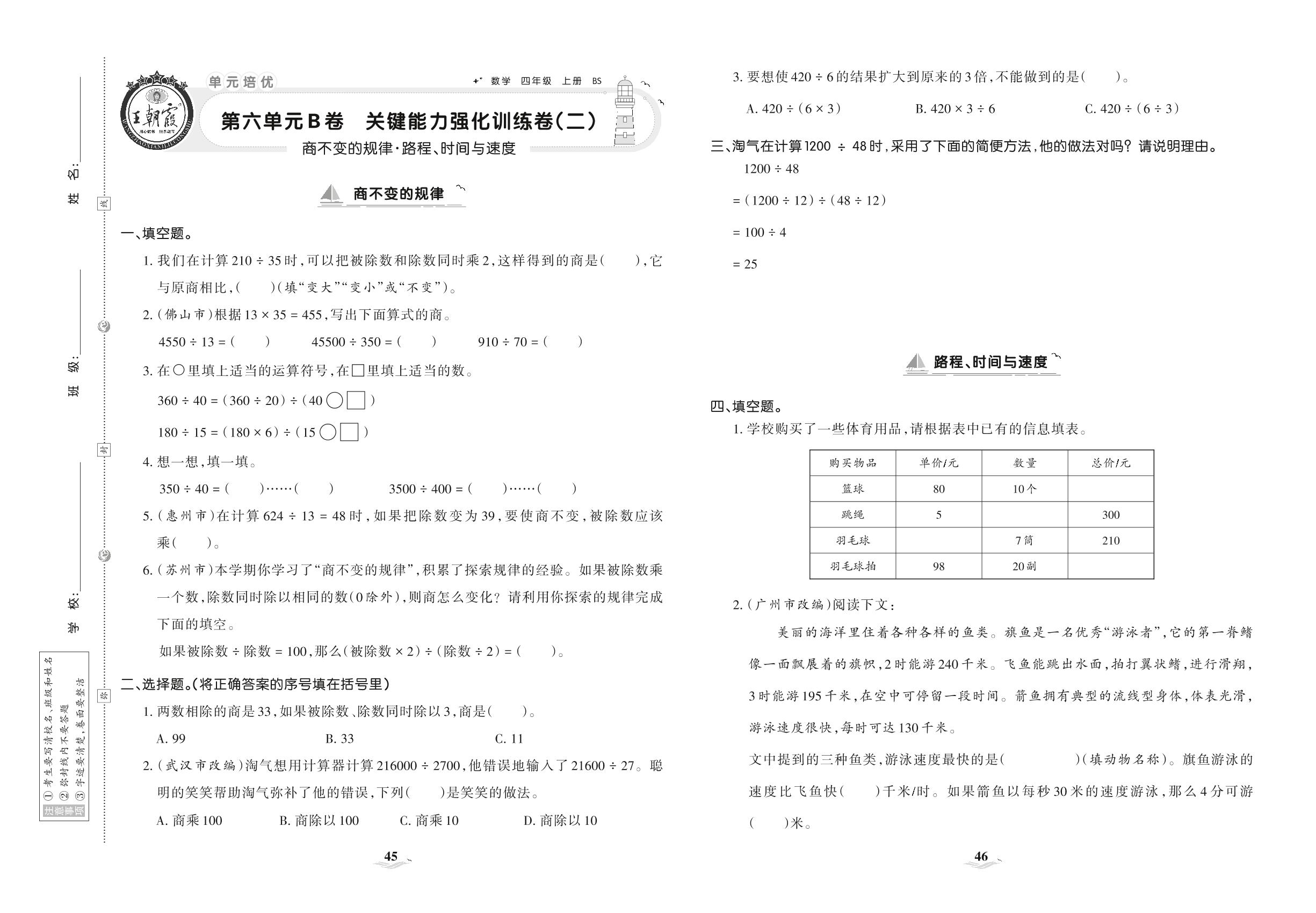 2021上册四年级数学北师版 第六单元B卷 关键能力强化训练卷(二)