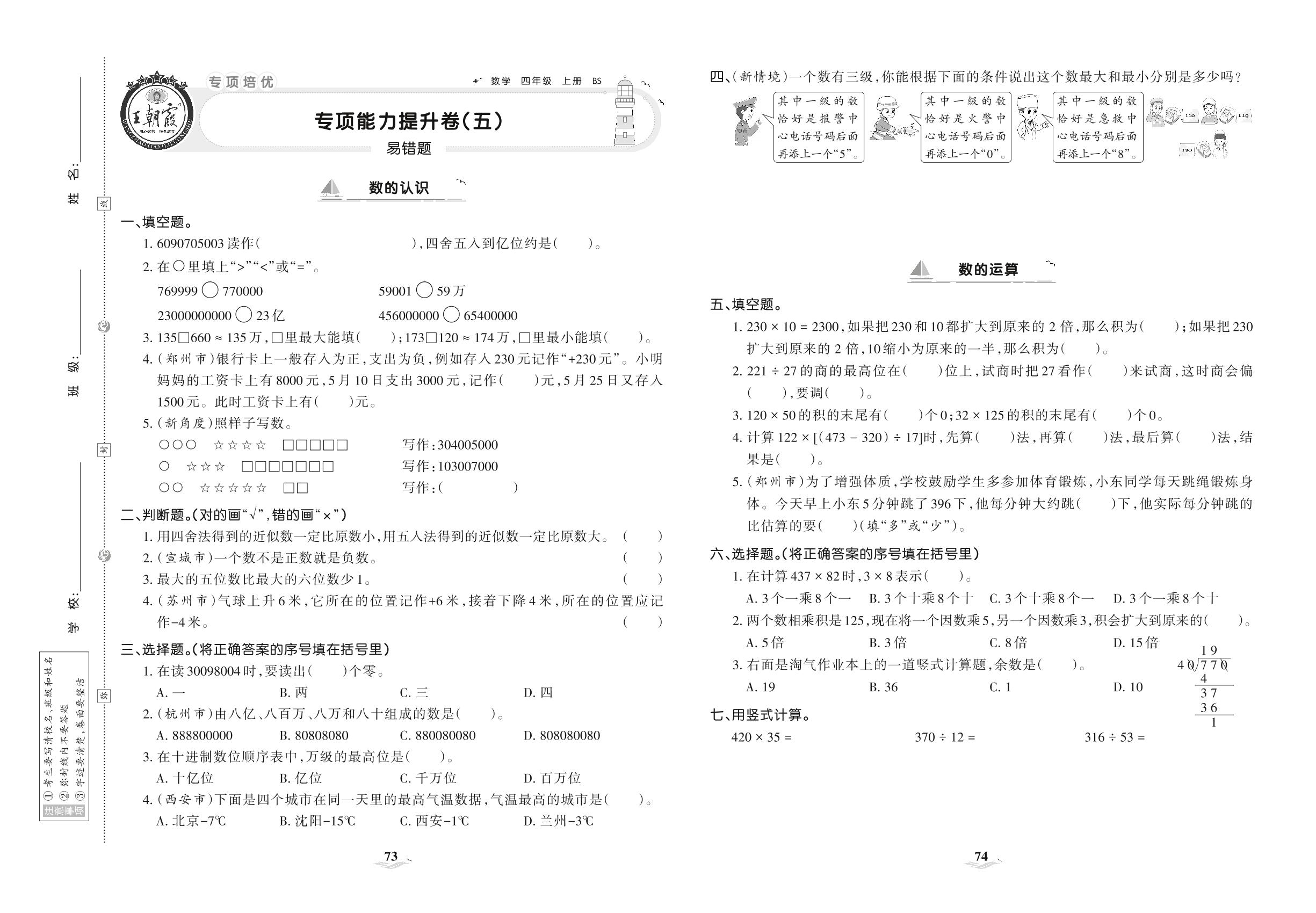 2021上册四年级数学北师版 专项能力提升卷(五) 易错题