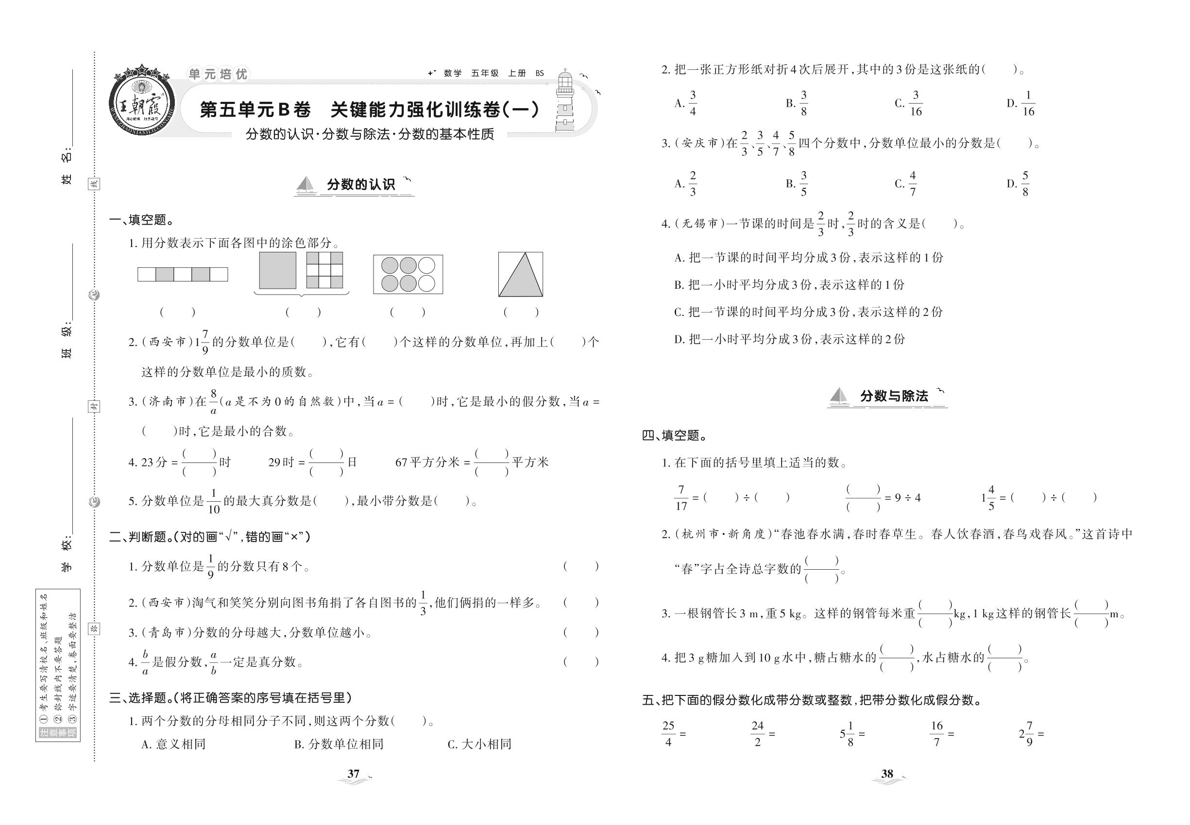 2021上册五年级数学北师版 第五单元B卷 关键能力强化训练卷(一)