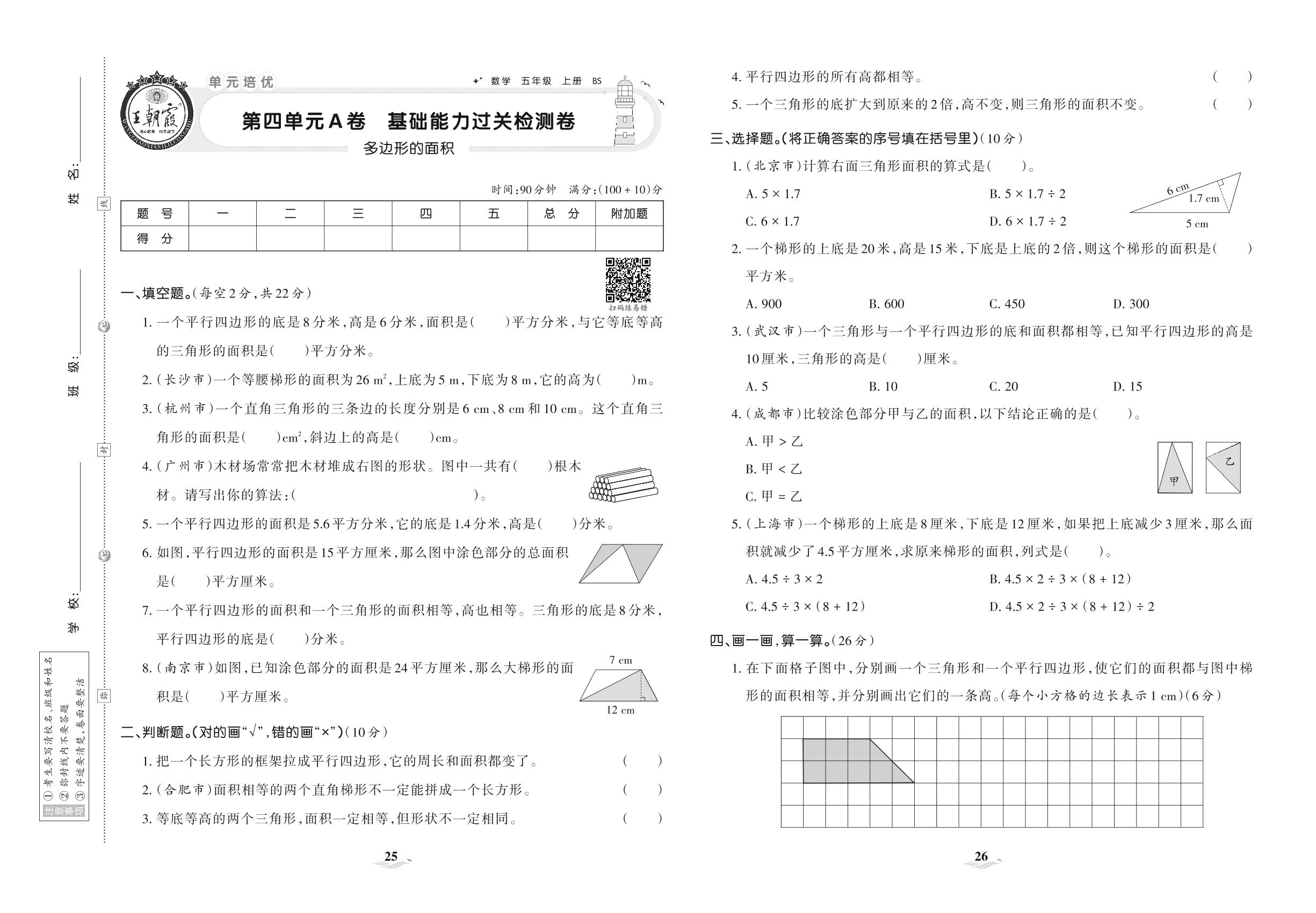 2021上册五年级数学北师版 第四单元A卷 基础能力过关检测卷