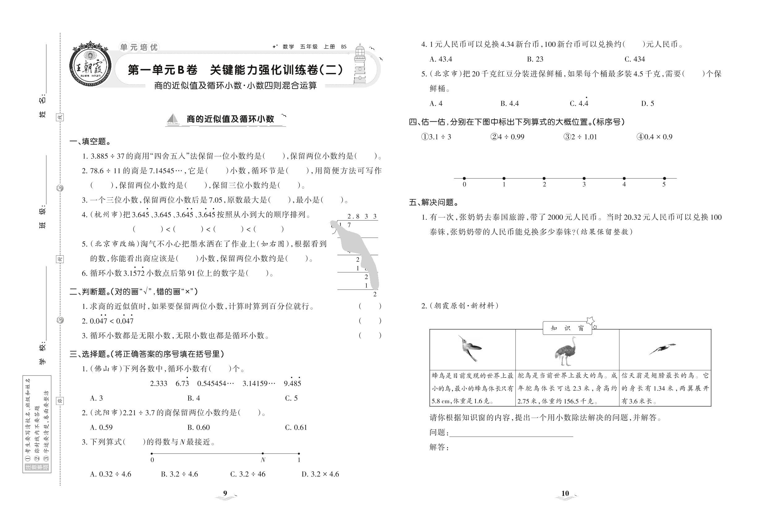 2021上册五年级数学北师版 第一单元B卷 关键能力强化训练卷(二)
