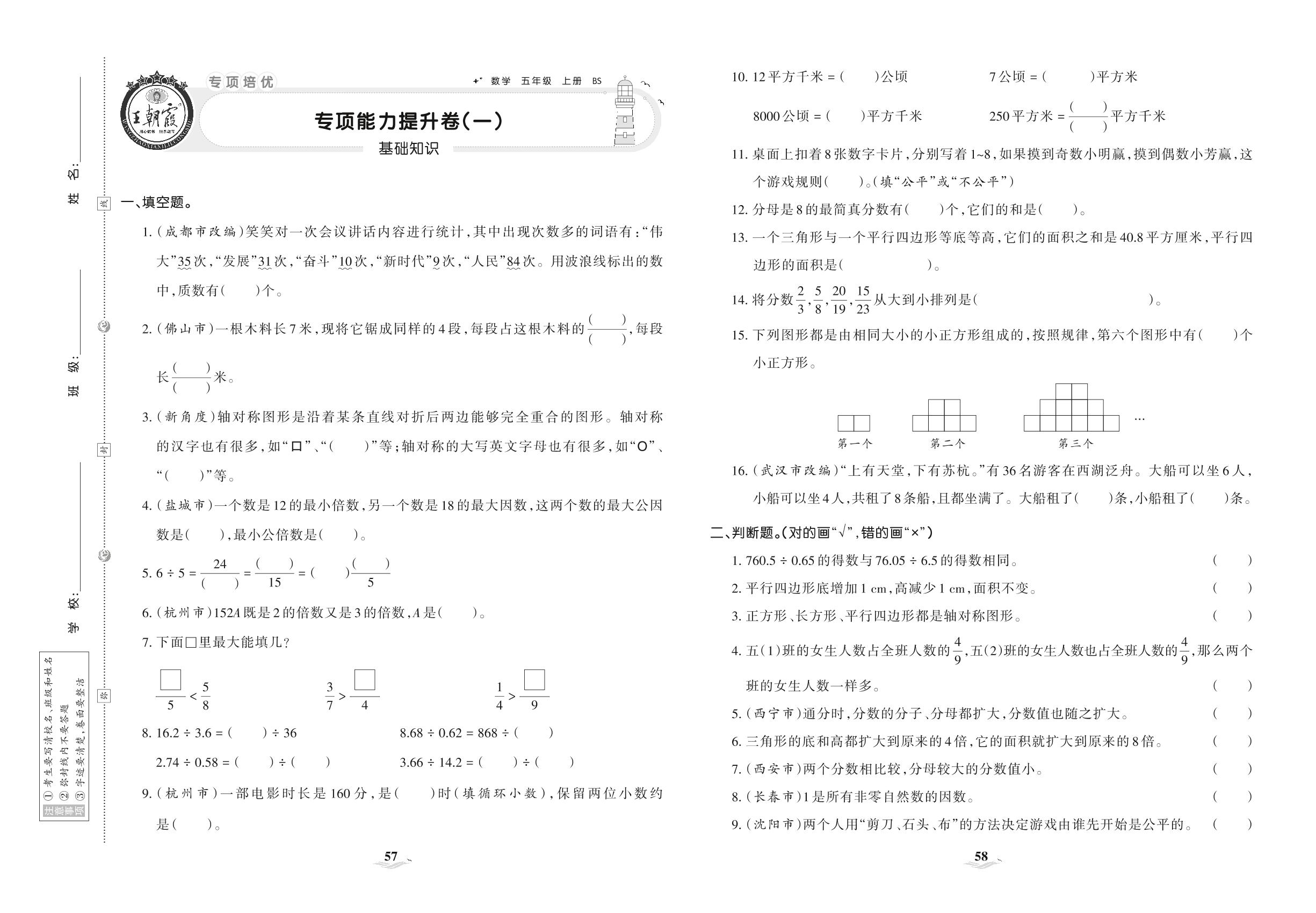 2021上册五年级数学北师版 专项能力提升卷(一) 基础知识