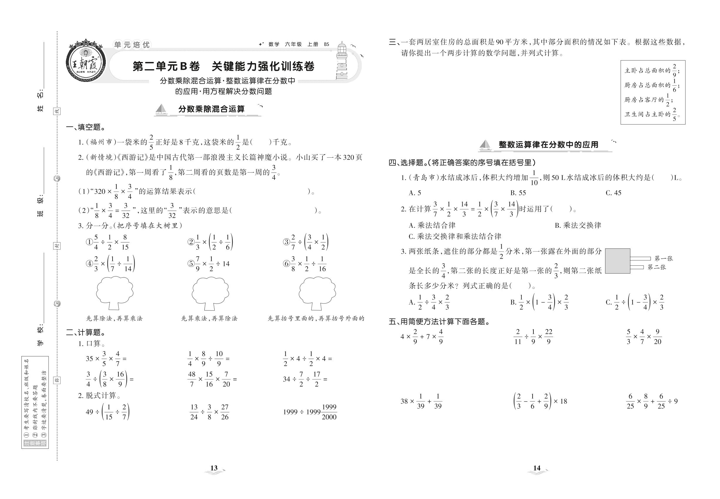 2021上册六年级数学北师版 第二单元B卷 关键能力强化训练卷