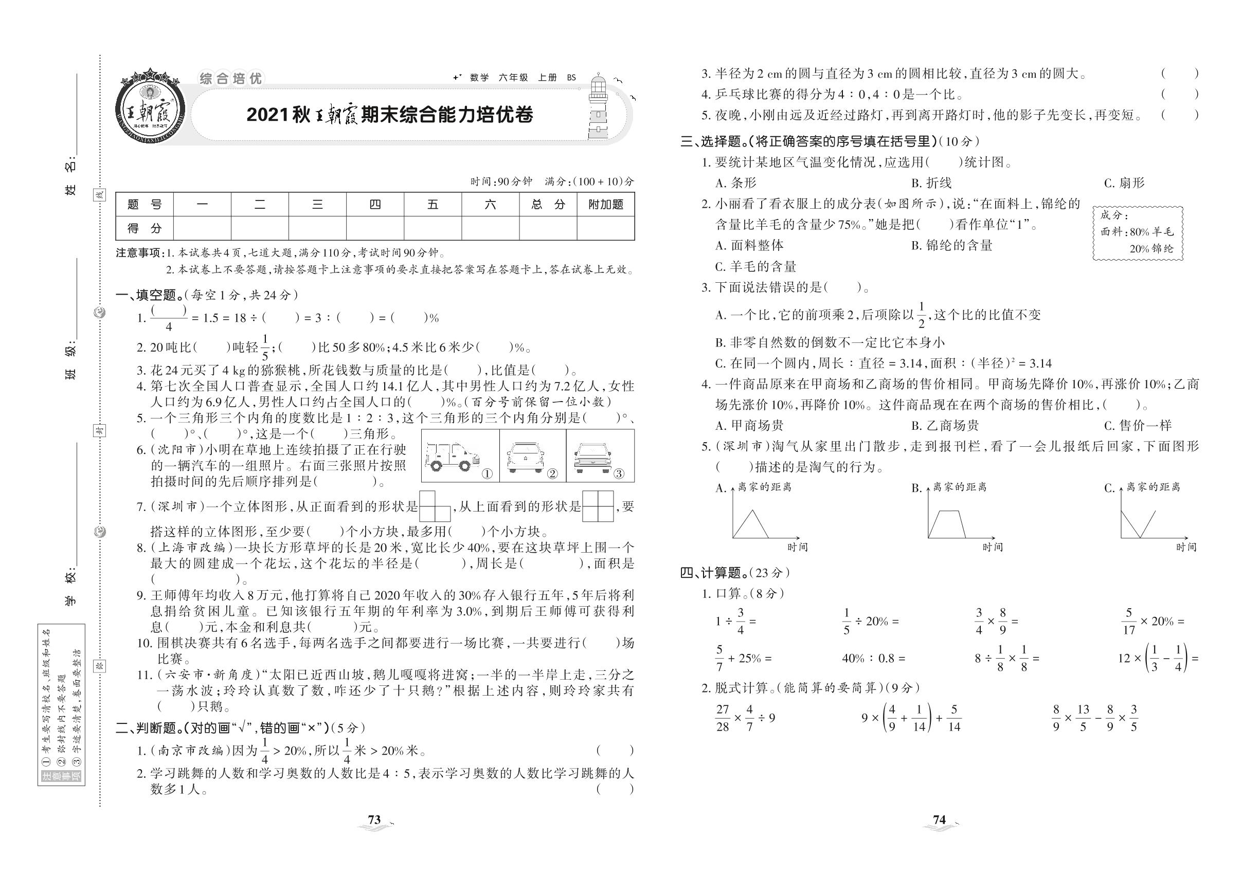 2021上册六年级数学北师版 王朝霞期末综合能力培优卷