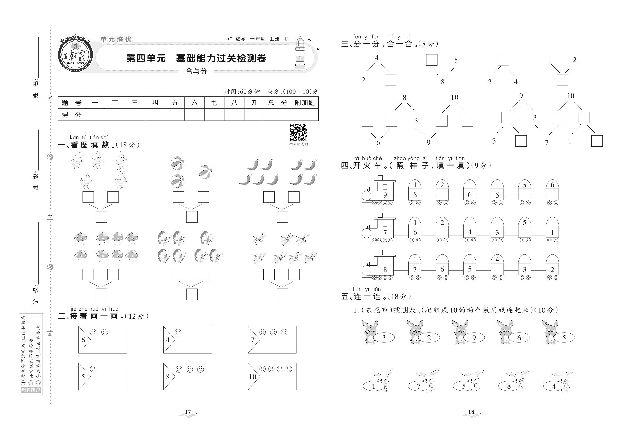 一年级数学冀教版上册单元卷