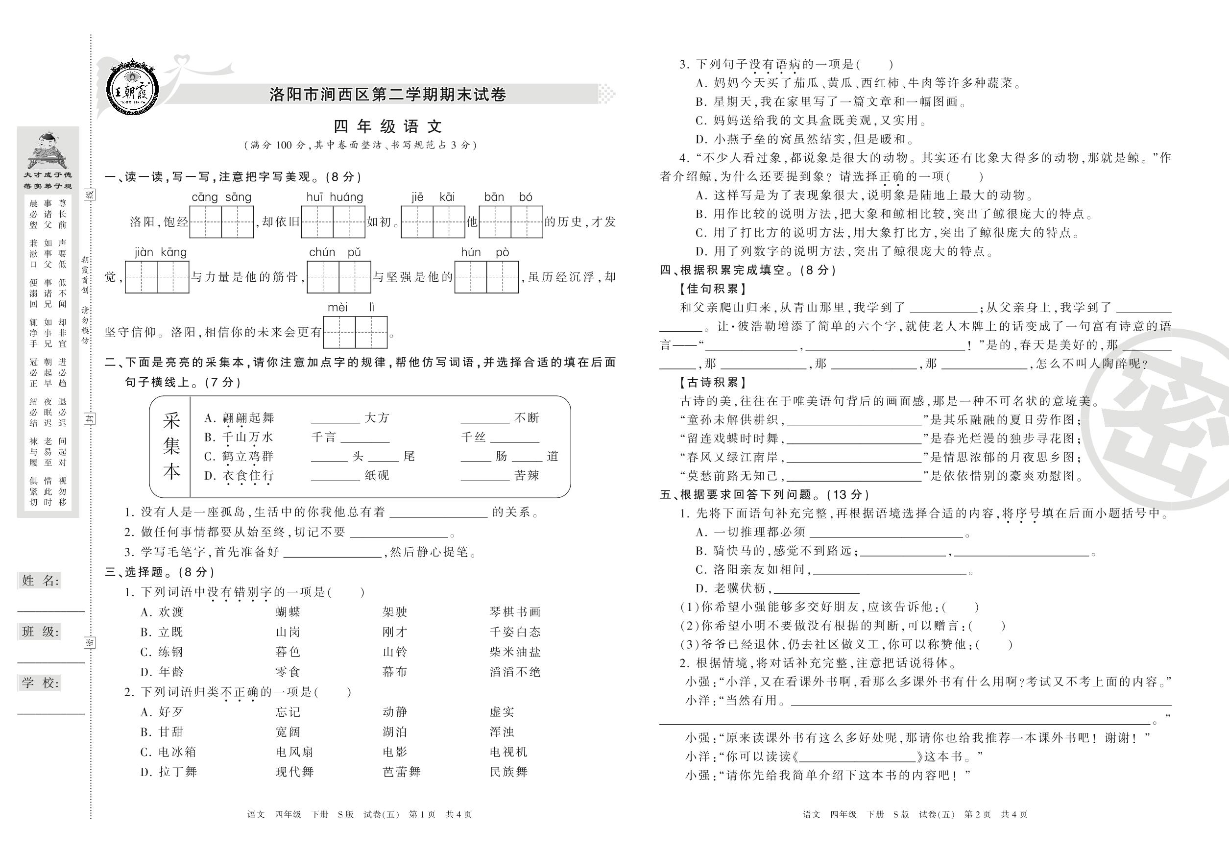 2015-2016学年第二学期洛阳市涧西区四年级语文试卷(S版)【5】