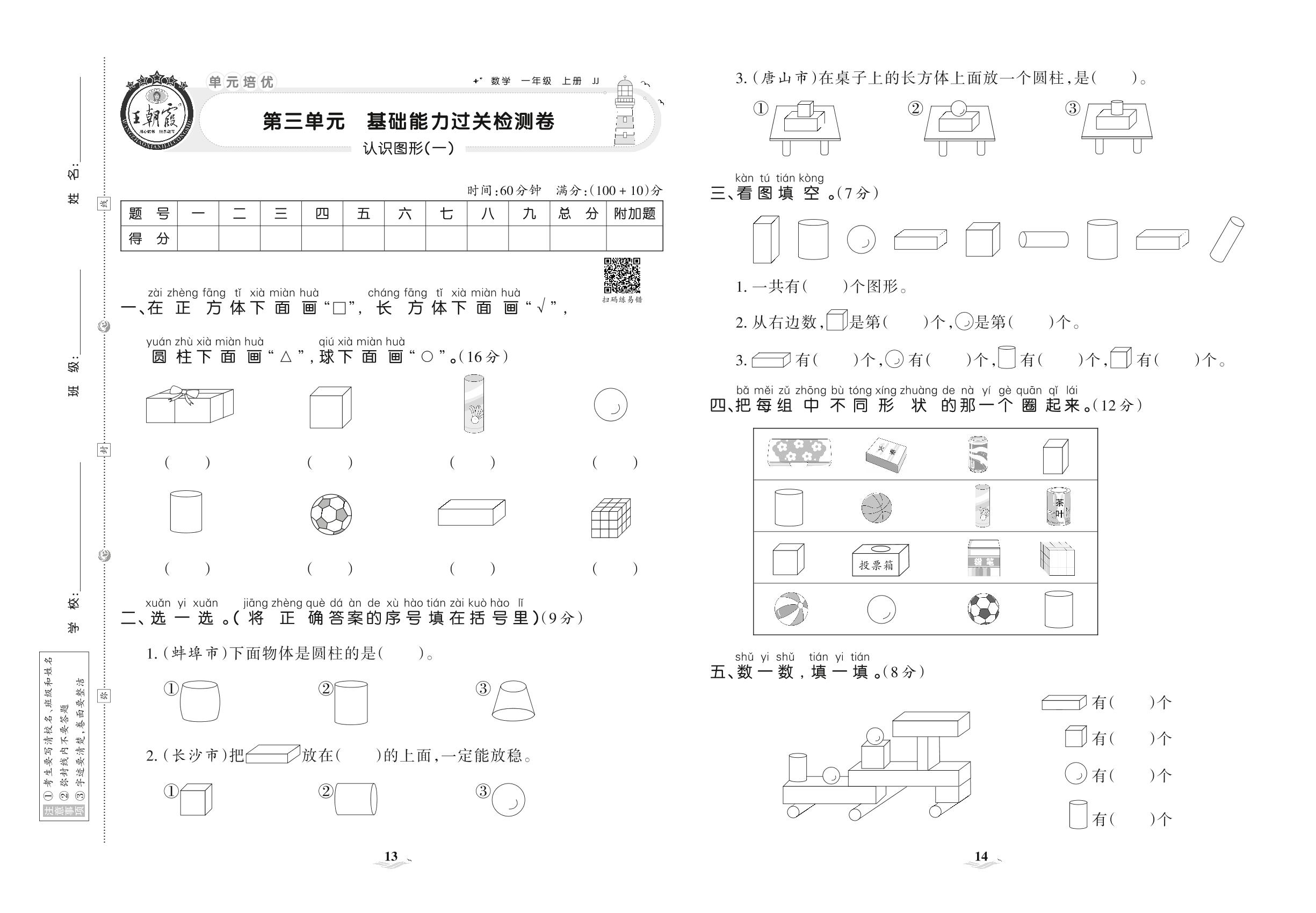 一年级数学冀教版上册单元卷
