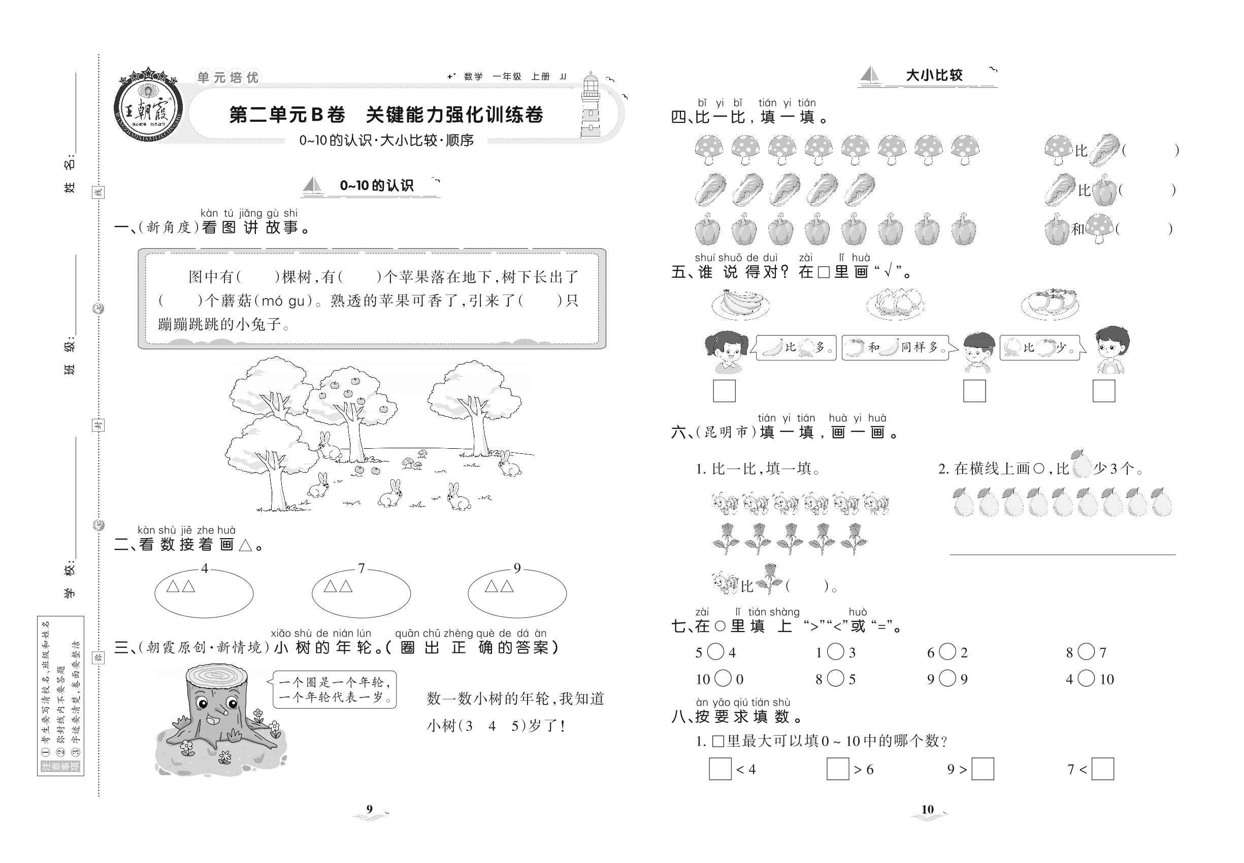 一年级数学冀教版上册单元卷