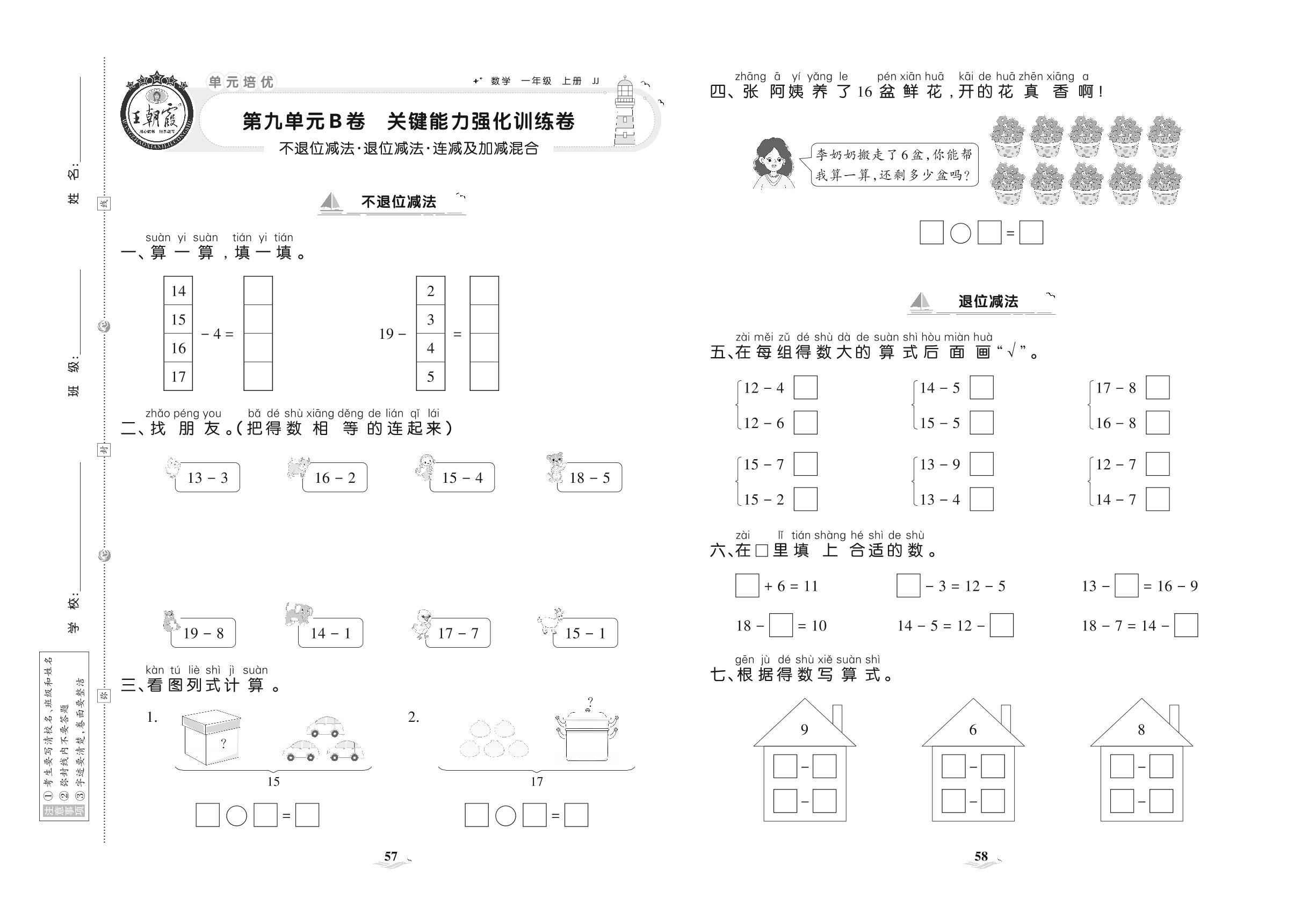 2021上册一年级数学冀教版 第九单元B卷 关键能力强化训练卷_R211214141058199