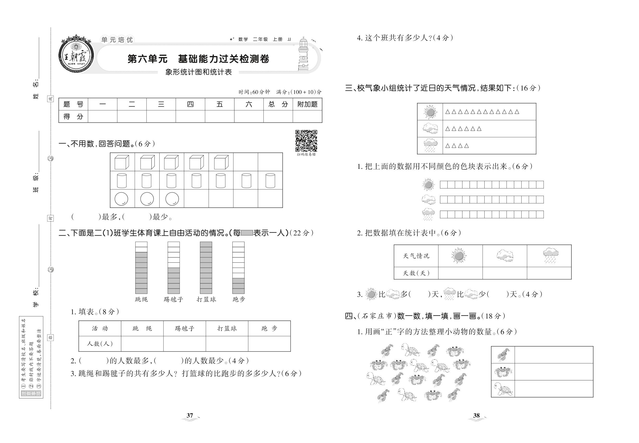 2021上册二年级数学冀教版 第六单元 基础能力过关检测卷