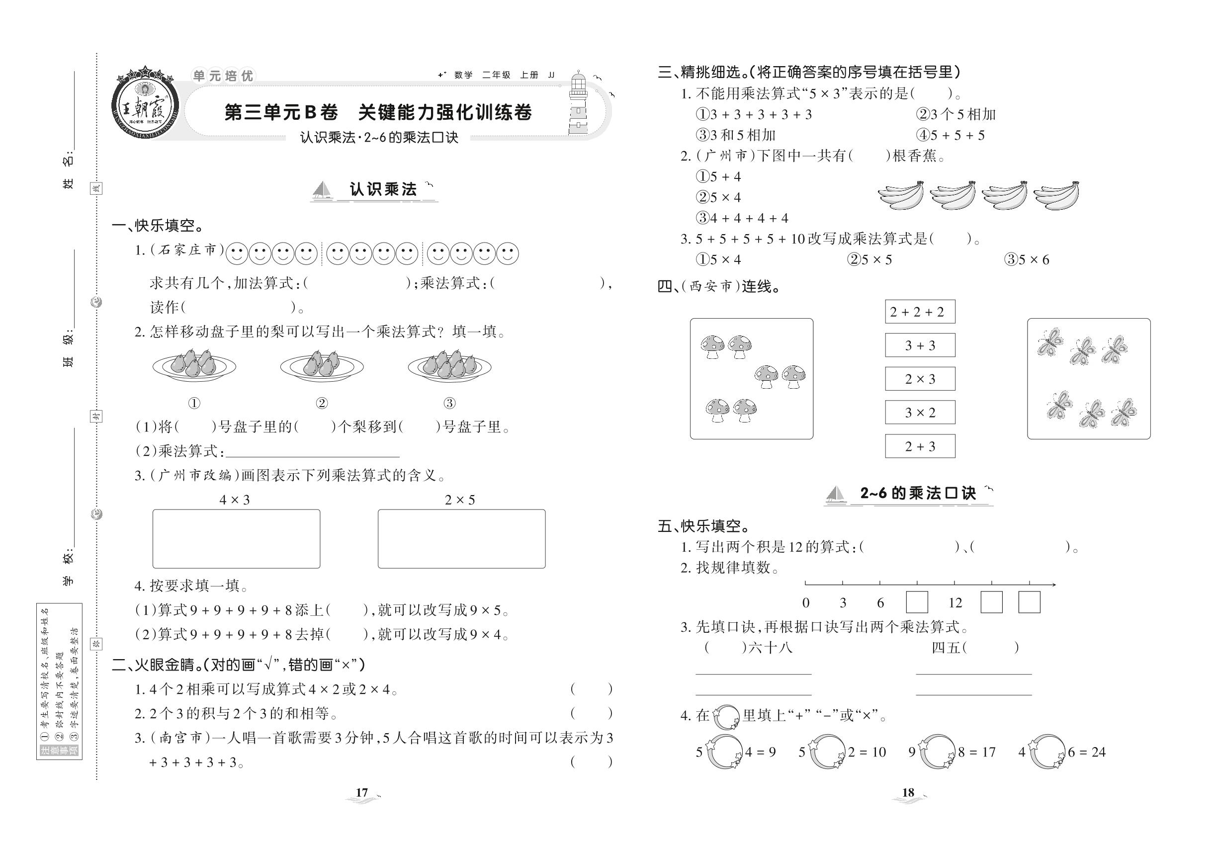 2021上册二年级数学冀教版 第三单元B卷 关键能力强化训练卷