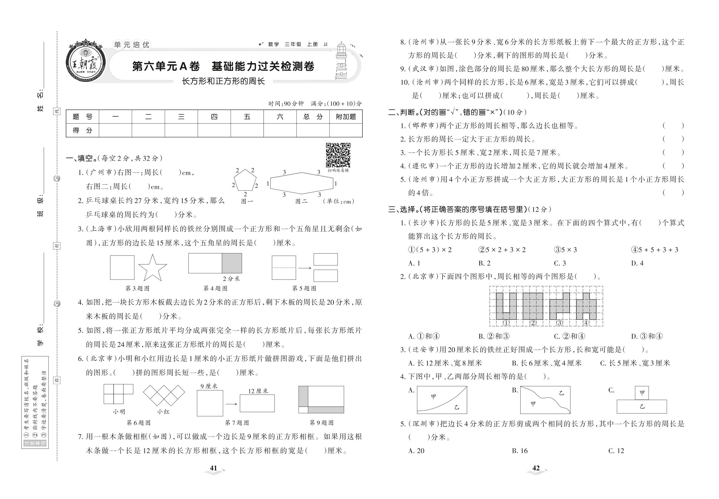 2021上册三年级数学冀教版 第六单元A卷 基础能力过关检测卷