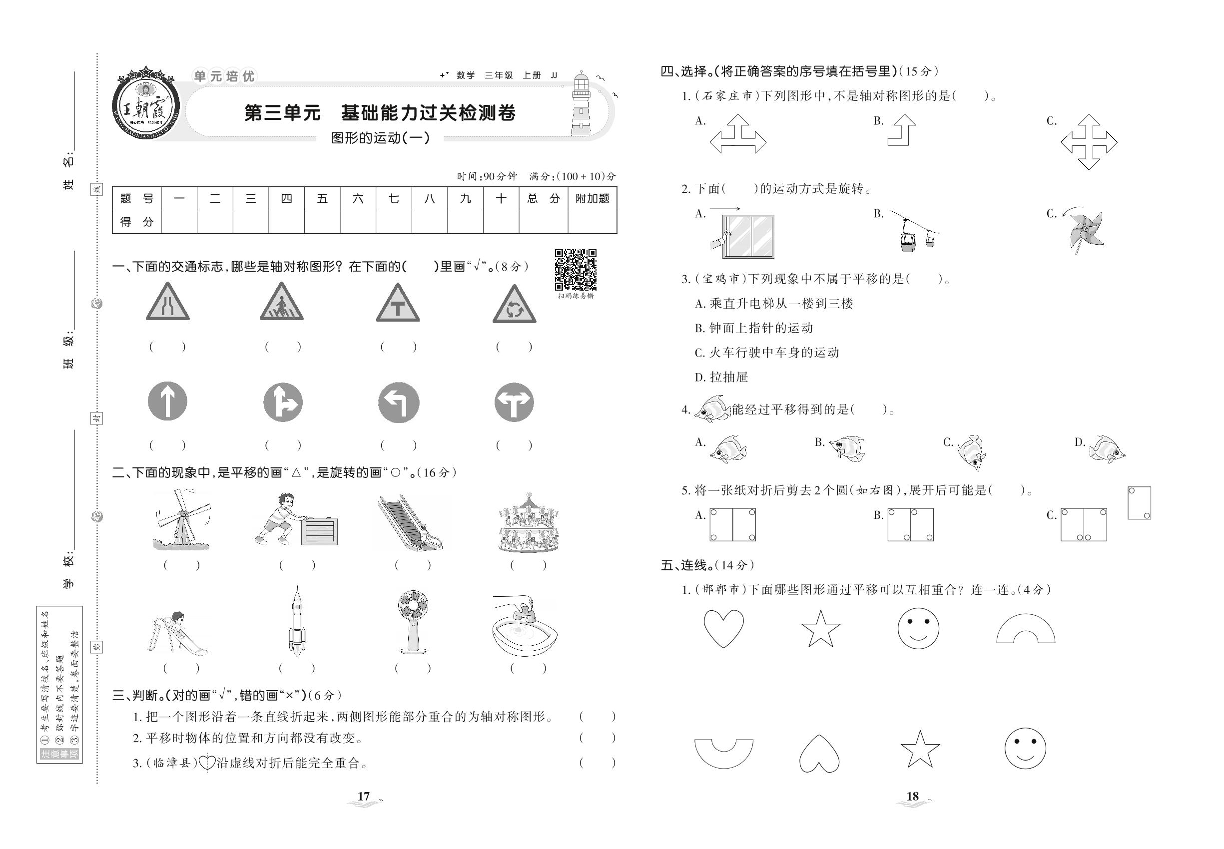 2021上册三年级数学冀教版 第三单元 基础能力过关检测卷