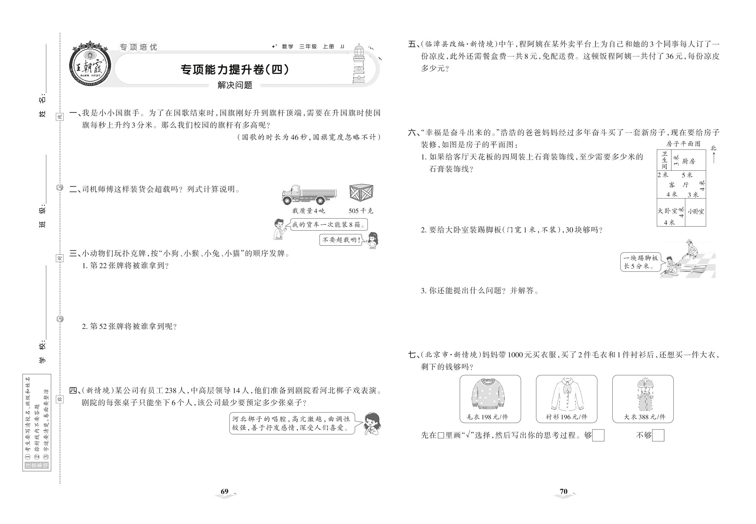 2021上册三年级数学冀教版 专项能力提升卷(四) 解决问题