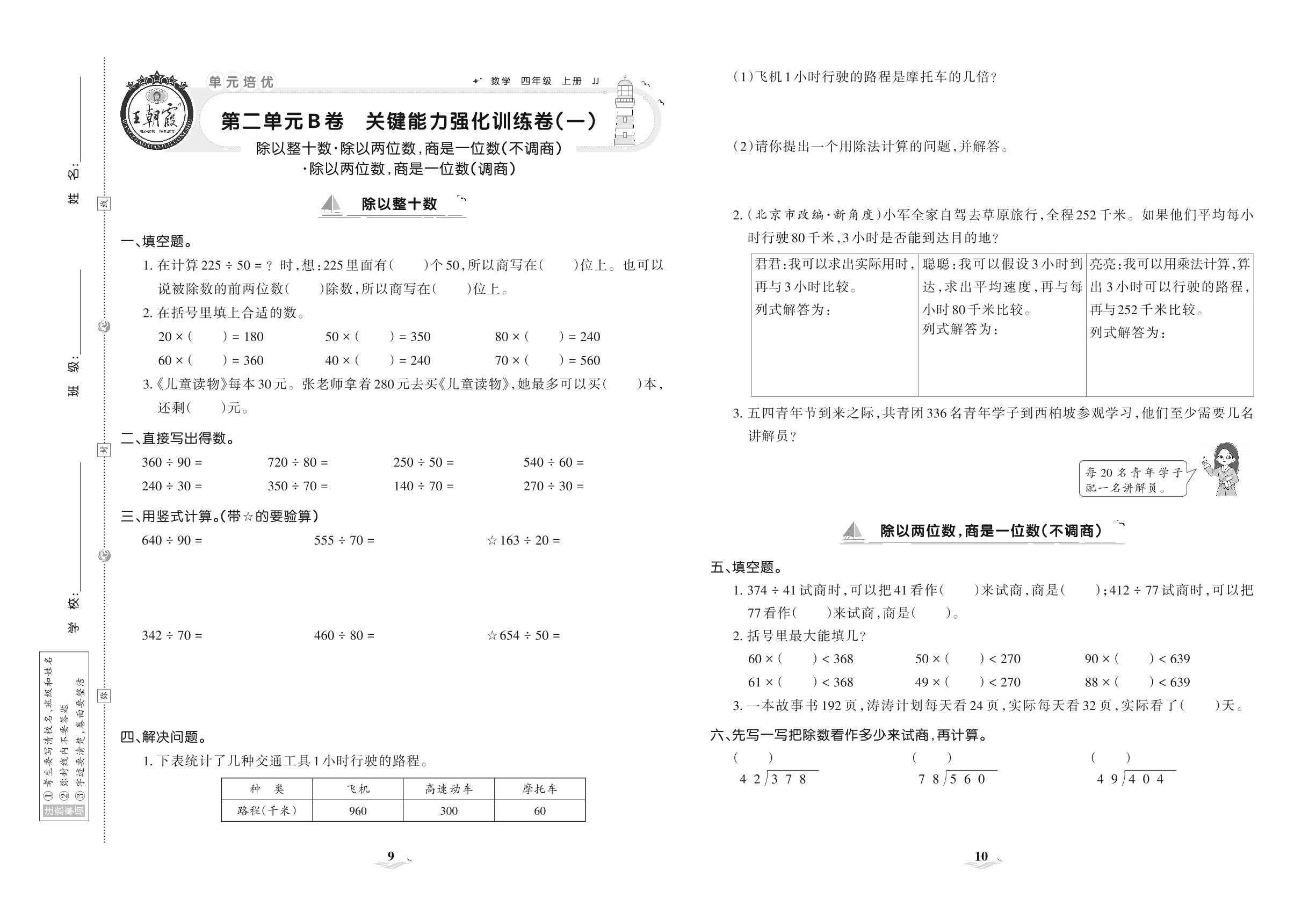 2021上册四年级数学冀教版 第二单元B卷 关键能力强化训练卷(一)