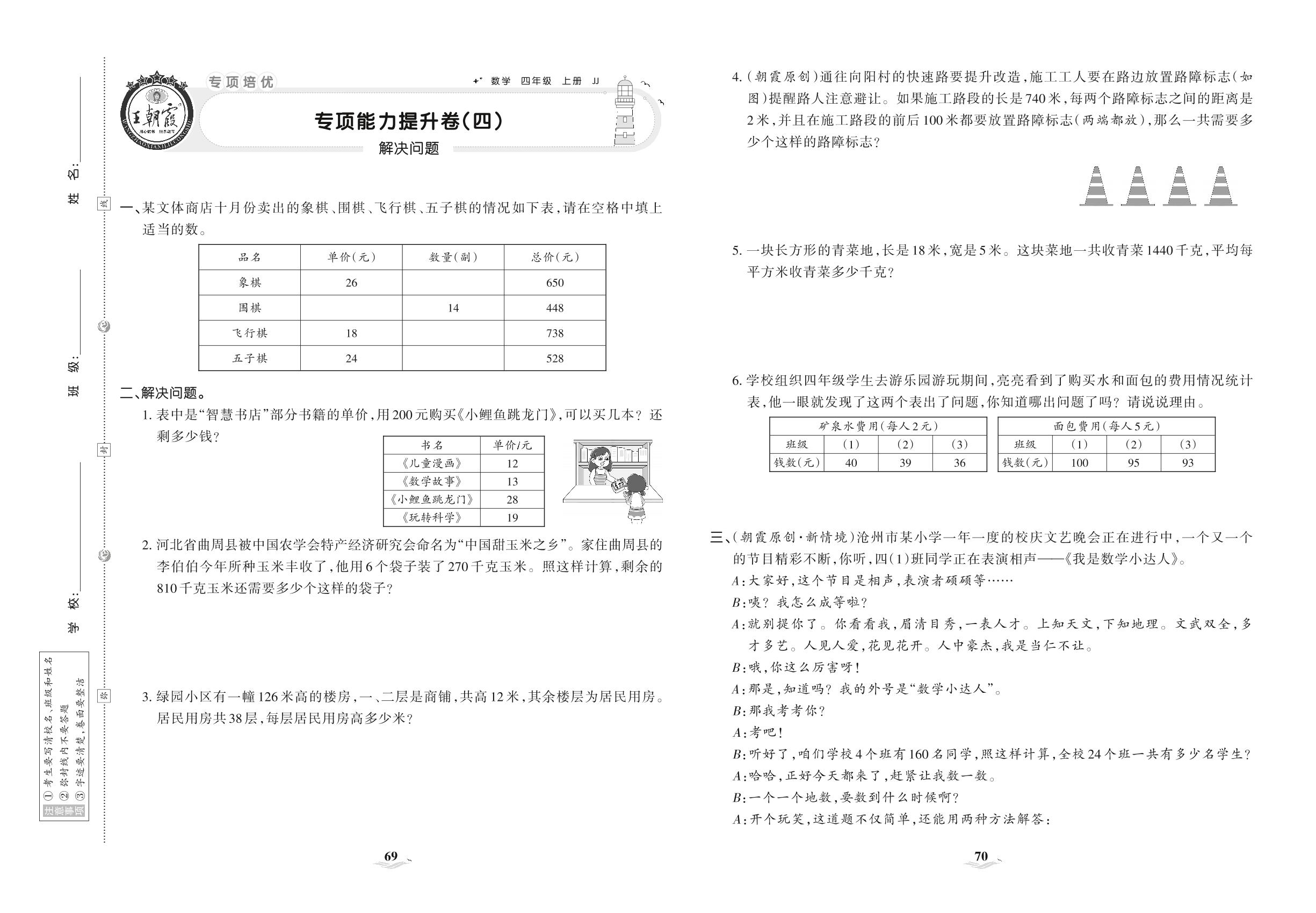 2021上册四年级数学冀教版 专项能力提升卷(四) 解决问题